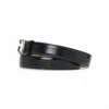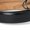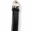 Cintura firmata Gucci, linea Vintage, realizzata in pelle liscia nera con rifiniture in tessuto scamosciato marrone. Dotata di una fibbia in metallo, misura 90 centimetri di lunghezza e 3 centimetri di altezza. L’articolo si presenta in ottime condizioni.