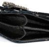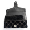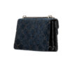 Borsa firmata Gucci, linea Dionysus nella misura medium, realizzata in velluto blu con la classica fantasia GG Supreme con inserti in pelle verniciata nera con hardware argento. La chiusura a clip con teste di tigre, internamente rivestita in tessuto scamosciato beige con due scompartimenti e comoda tasca centrale con chiusura a zip, la borsa è abbastanza capiente. Munita di una tracolla a scorrimento in catena, per una comoda portata a spalla o a tracolla. L’articolo si presenta in ottime condizioni.