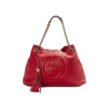 Borsa firmata Gucci, linea Dionysus nella misura mini, realizzata in tweed bianco con rifiniture in pelle rossa e arricchita dalla classica fantasia GG e hardware argento. La chiusura a clip con teste di tigre, internamente rivestita in pelle rossa con comode tasche e scompartimenti, la borsa è capiente per l’essenziale. Munita di una tracolla rimovibile in catena, per una comoda portata a spalla o a mano come pochette. L’articolo si presenta in buone condizioni, con lievi segni di usura visibili in foto.