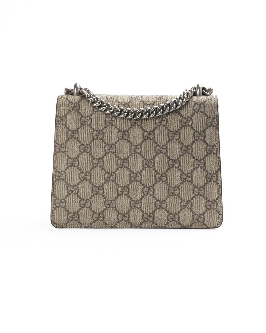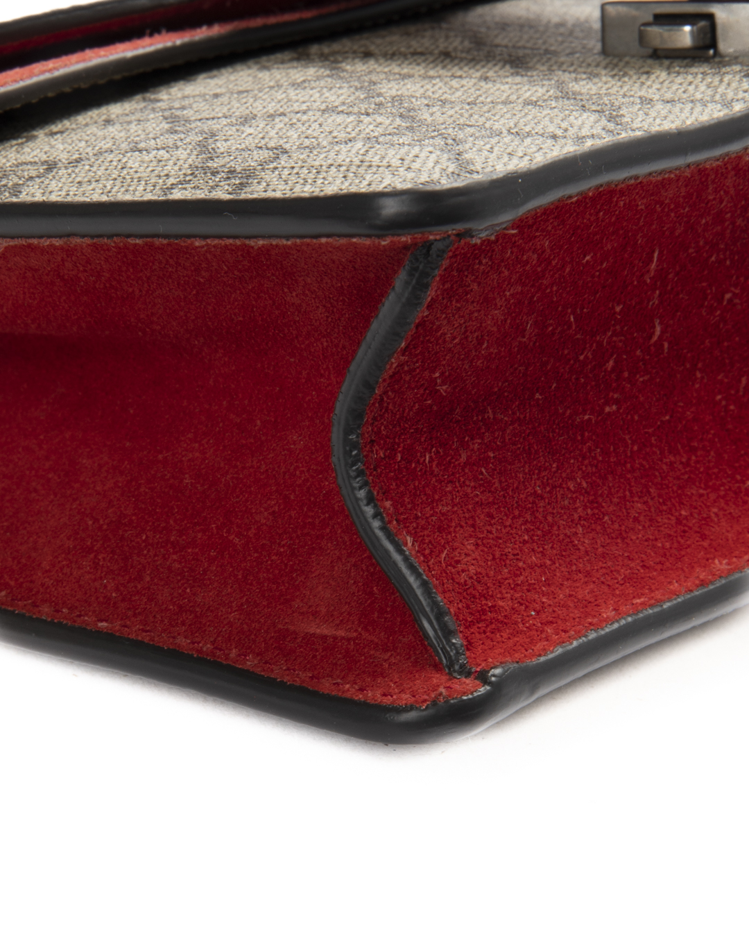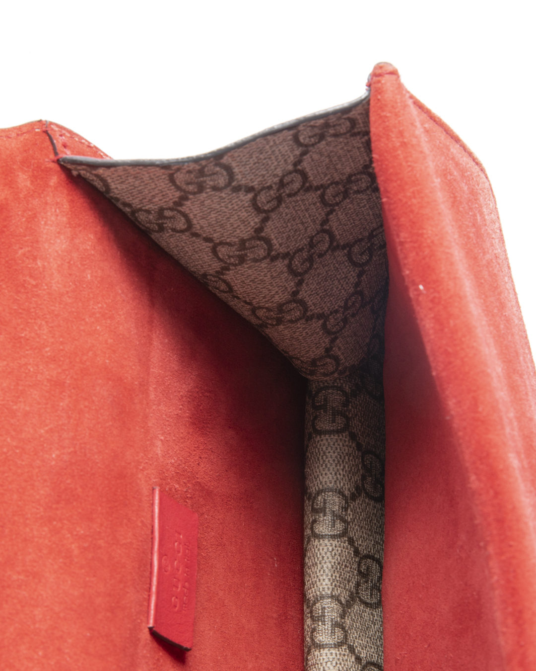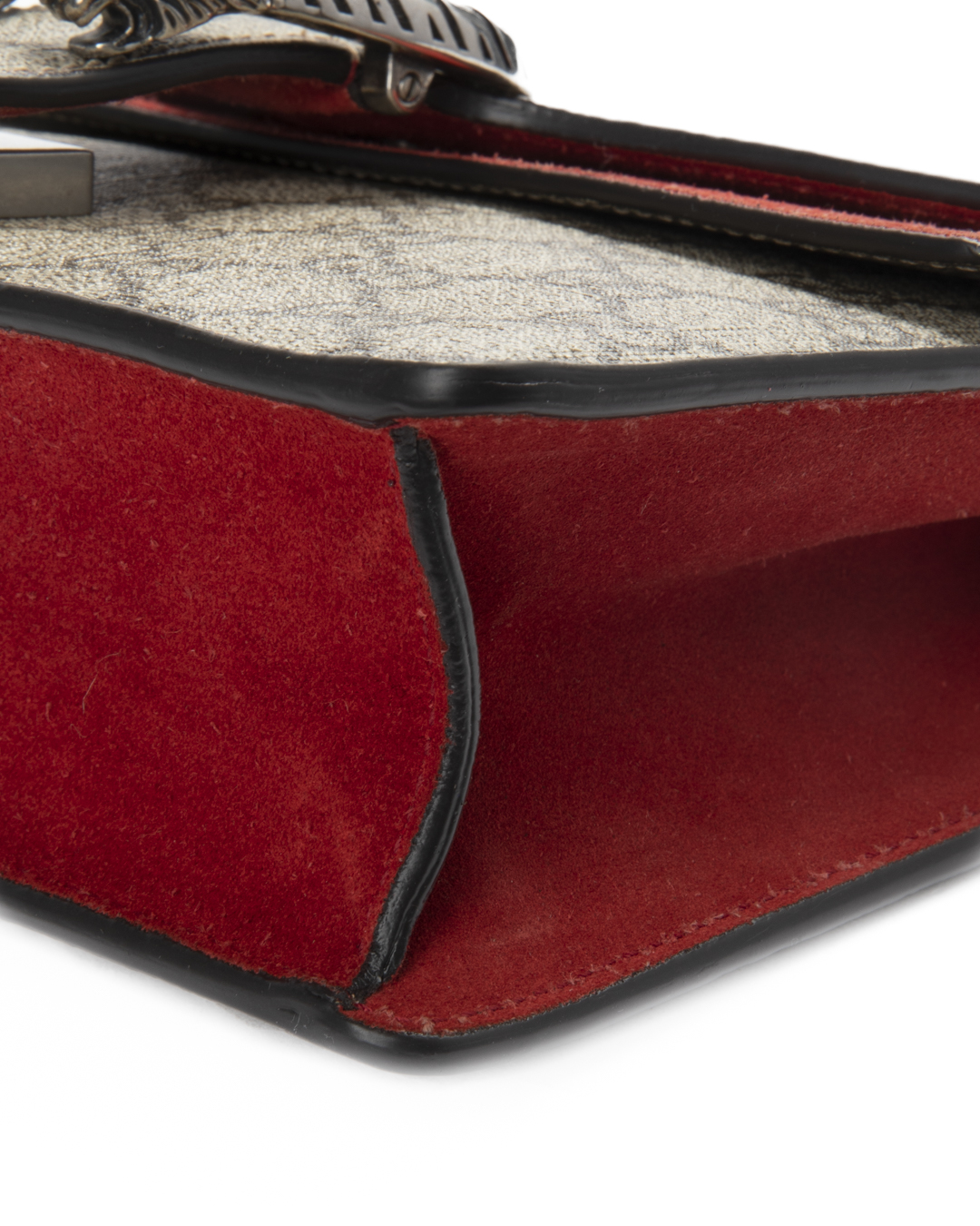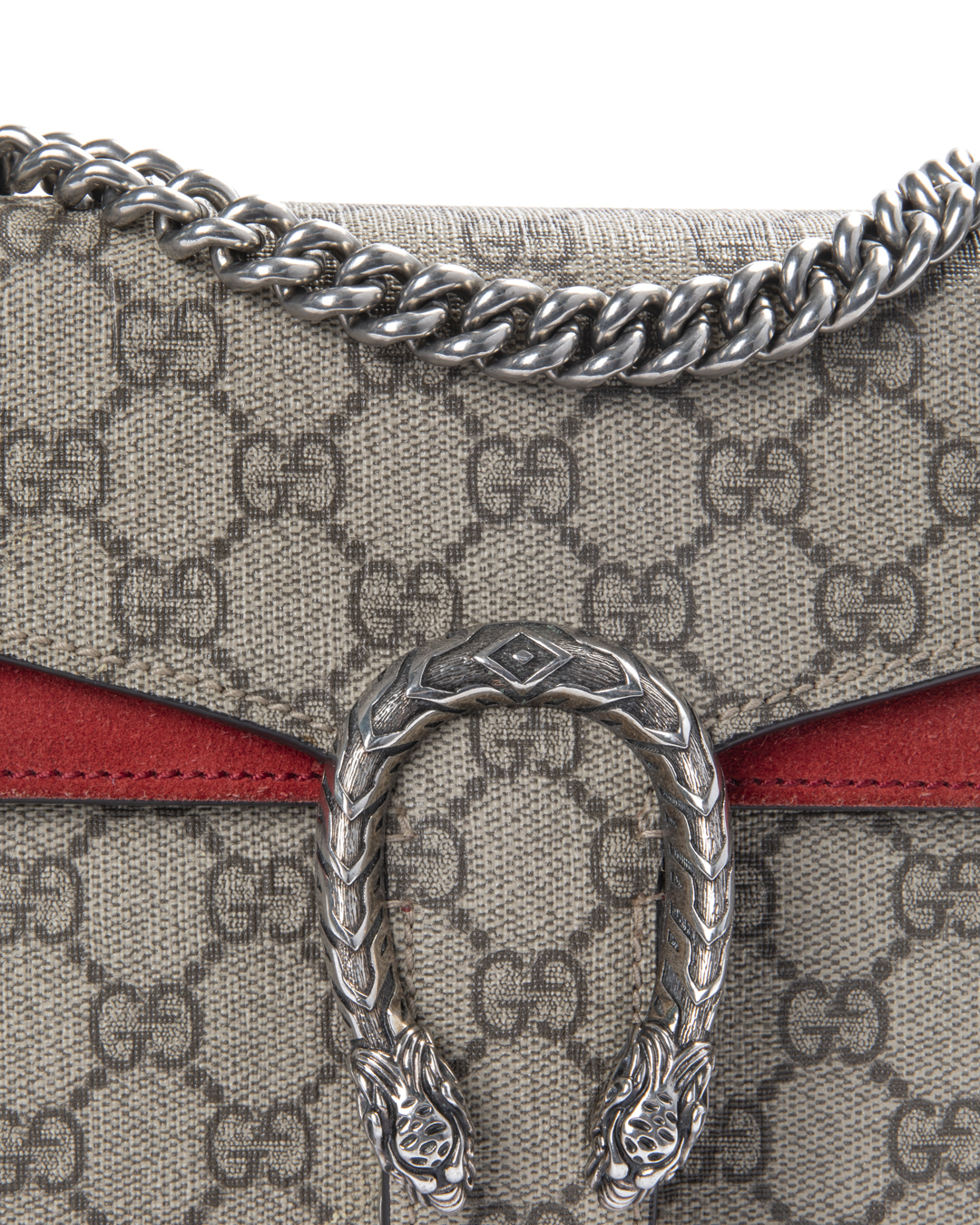 Borsa firmata Gucci, linea Dionysus, nella misura small, realizzata in tela nella classica fantasia GG Supreme con inserti in tessuto scamosciato rosso e hardware argento. La chiusura ad incastro con teste di tigre, internamente rivestita in tessuto scamosciato con piccola tasca, la borsa è capiente per l’essenziale. Munita di una tracolla scorrevole in catena, per una comoda portata a spalla o a tracolla. L’articolo si presenta in ottime condizioni.