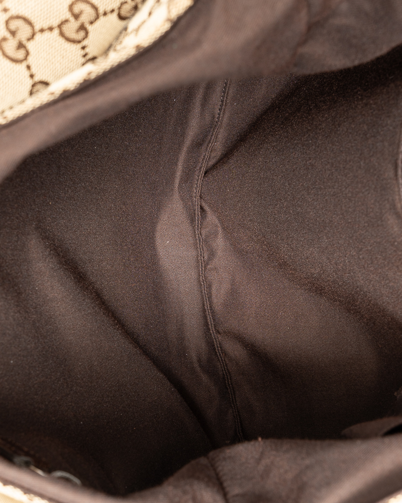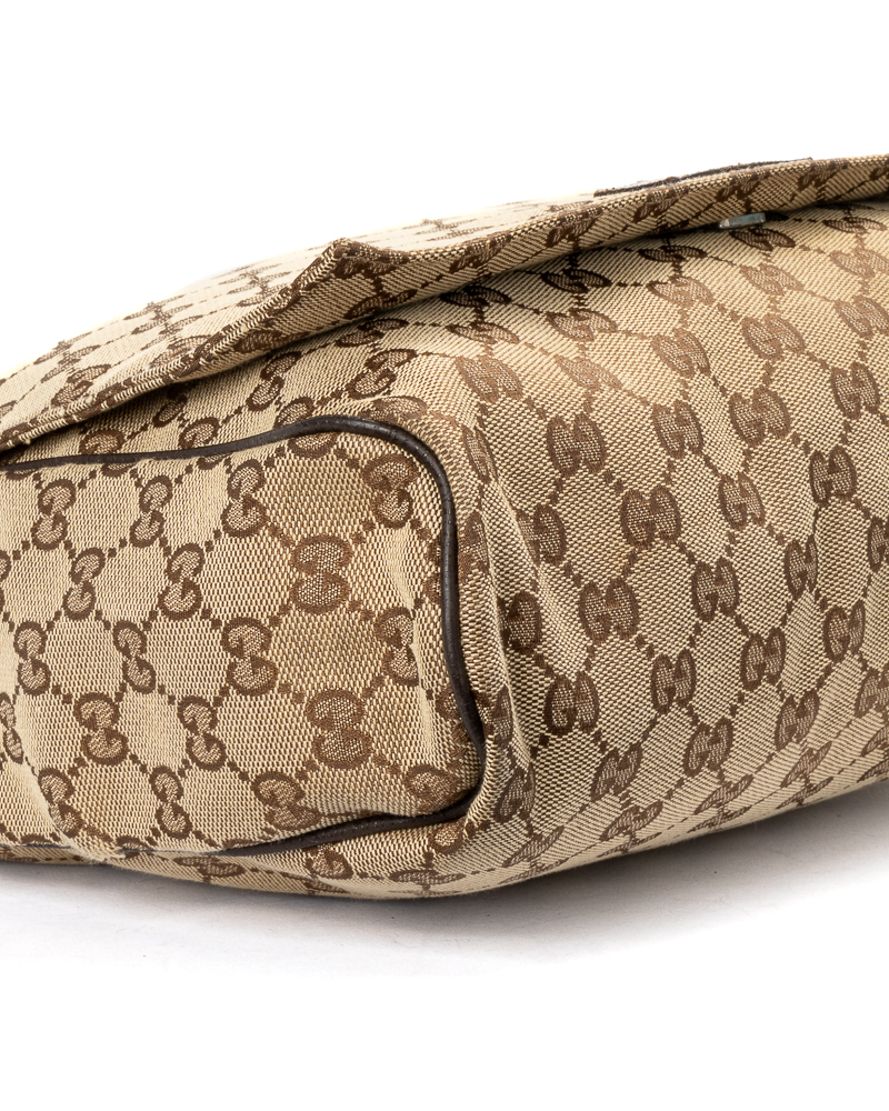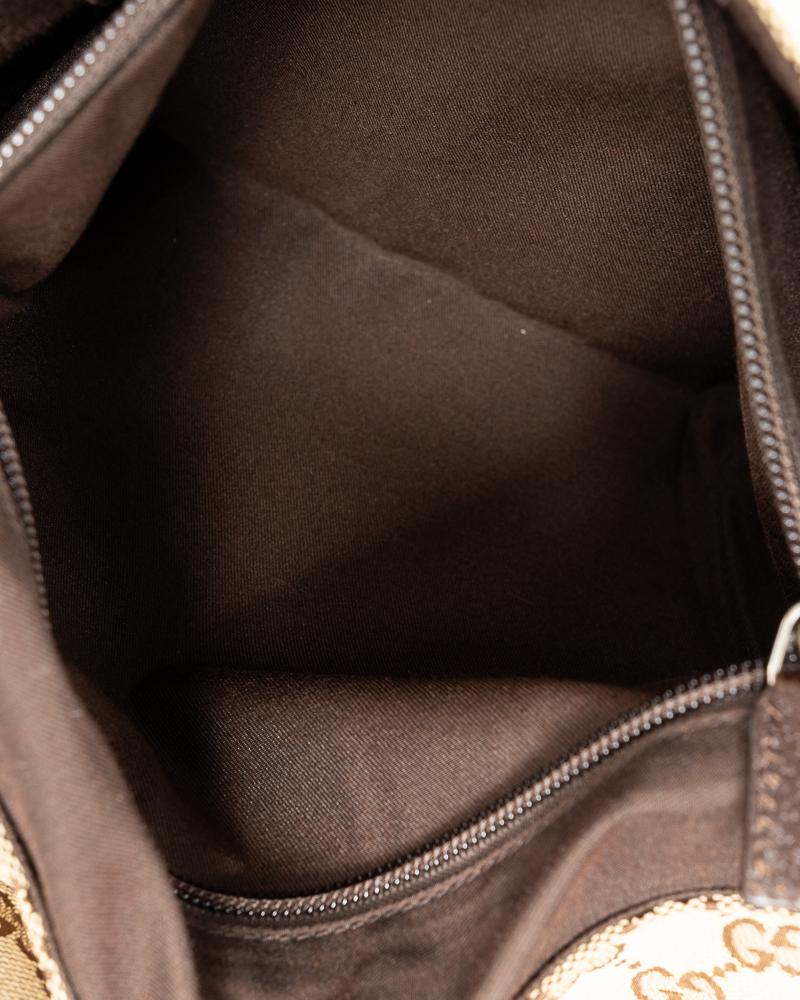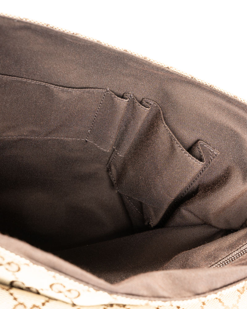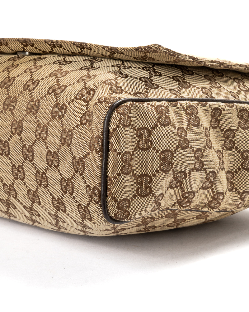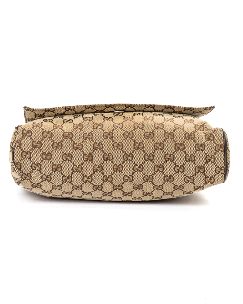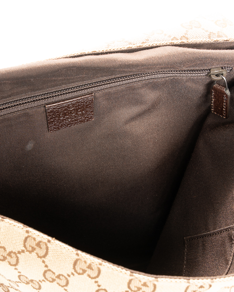 Borsa firmata Gucci, modello messanger nella misura small, realizzata in tela nella classica fantasia GG Supreme con inserti in pelle marrone con hardware argento. Dotata di una patta con chiusura calamitata, internamente rivestita in tela marrone con comode tasche, la borsa è abbastanza capiente. Munita di una tracolla in tessuto regolabile, per una comoda portata a spalla o a tracolla. L'articolo si presenta in buone condizioni, con piccole usure sulla pelle.