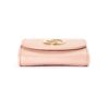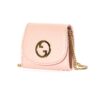 Borsa firmata Gucci, linea Blondie, modello Mini Wallet, realizzata in pelle liscia nella raffinata tonalità rosa con dettagli in hardware dorato. La patta frontale è arricchita dal classico logo “GG” in metallo dorato e presenta una chiusura a clip. L’interno, foderato in pelle tono su tono e nylon celeste, offre numerose tasche, inclusa una centrale con zip per banconote e documenti, spaziosa per l’essenziale. La borsa è dotata di una tracolla rimovibile in catena dorata, perfetta per essere portata comodamente a spalla. L’articolo si trova in condizioni pari al nuovo.