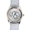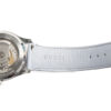 Orologio firmato Gucci, modello Snake, realizzato in pelle con motivo struzzo. Ha un quadrante in madreperla trasparente, che consente una visione del movimento dell’orologio, arricchito da un Kingsnake in argento. Taglia UNI. L’articolo si presenta in condizioni pari al nuovo.