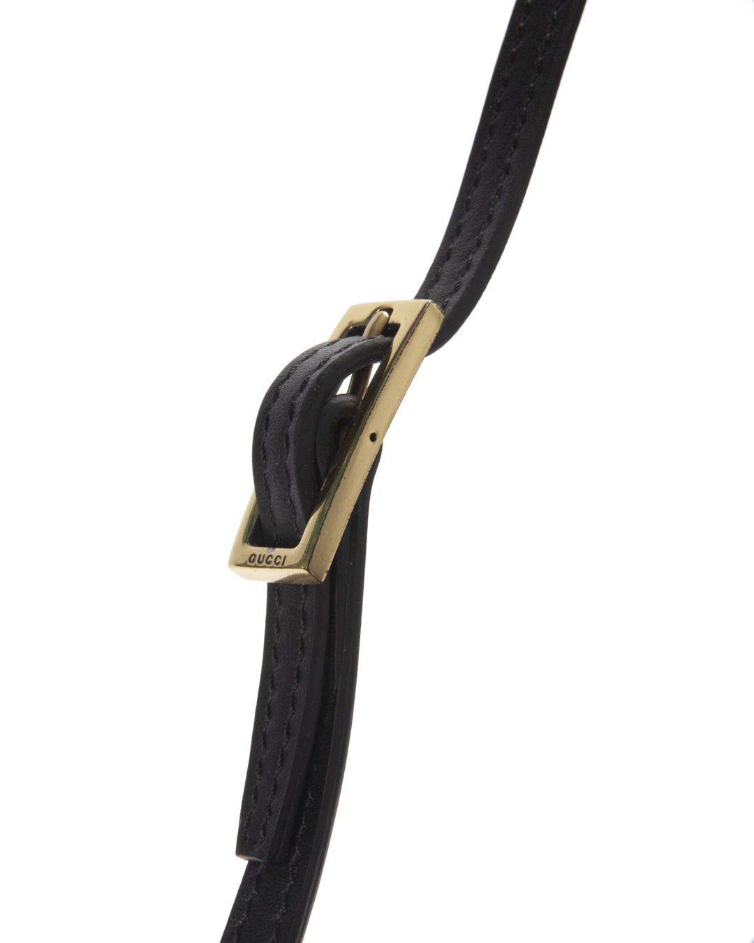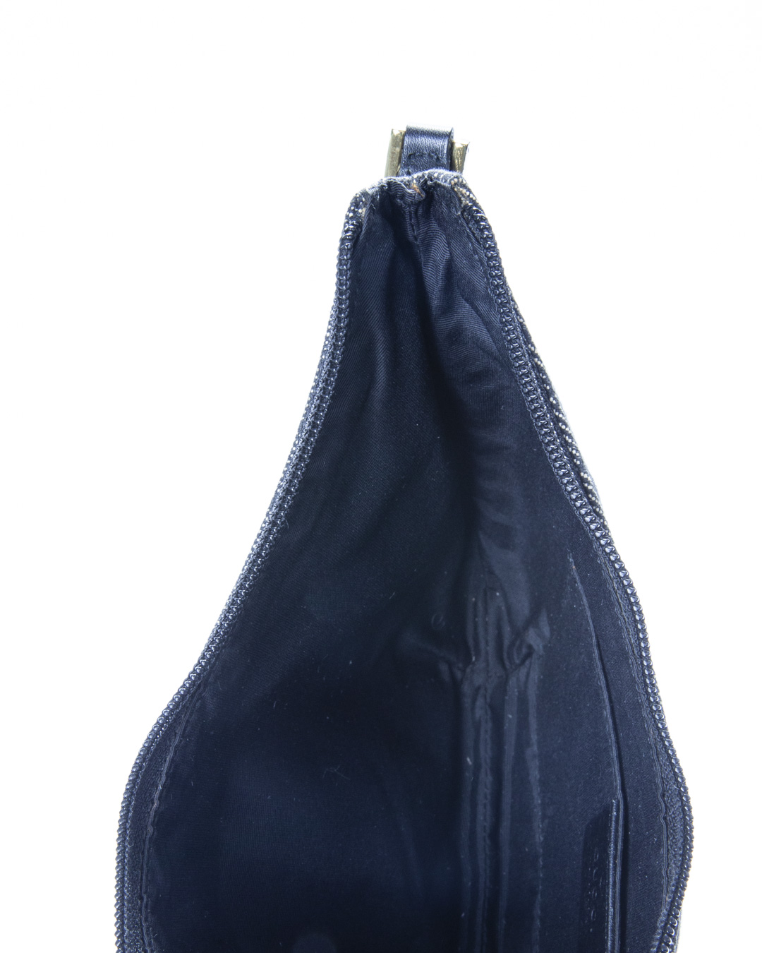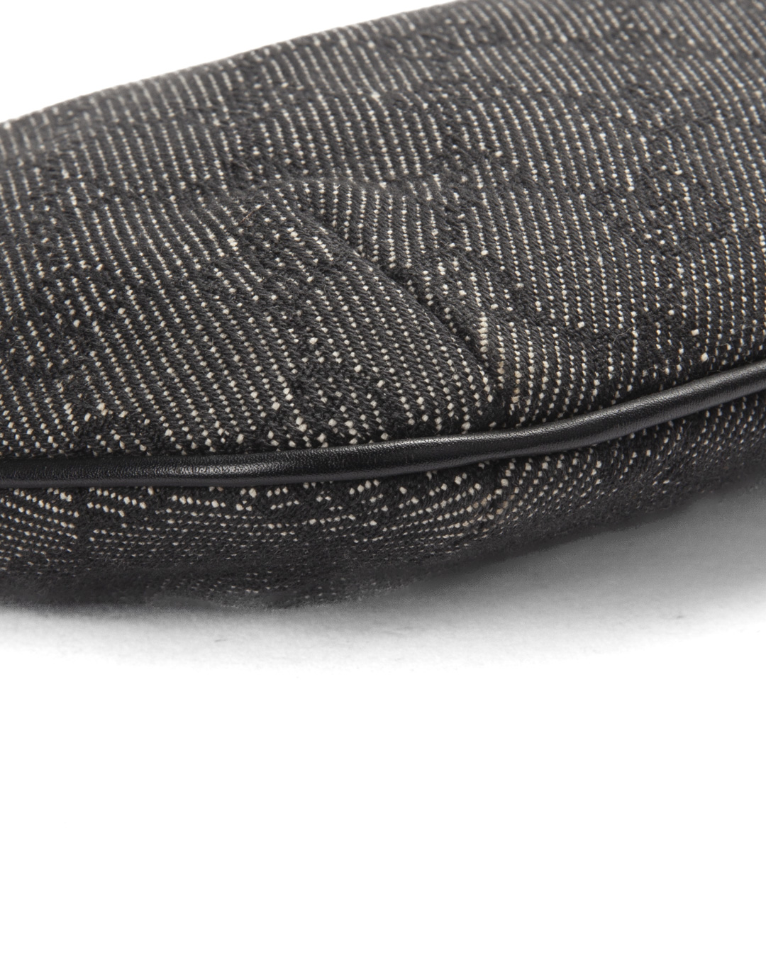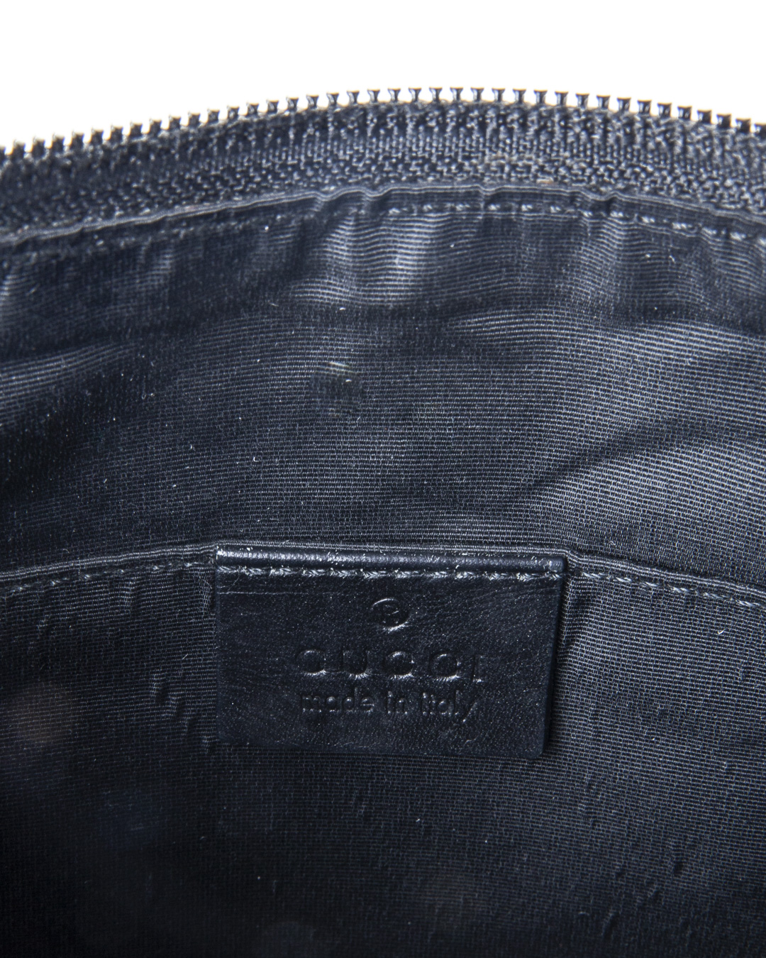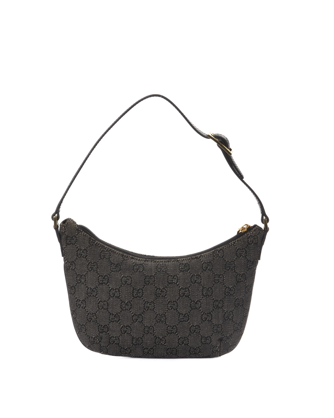 Borsa firmata Gucci, modello hobo, realizzata in denim nera nella classica fantasia GG Supreme con inserti in pelle e hardware dorato. Dotato di una chiusura superiore a zip, internamente rivestito in tela tono su tono, la borsa è capiente per l’essenziale. Munito di un manico in pelle, per una comoda portata a spalla o a mano. L’articolo si presenta in ottime condizioni.