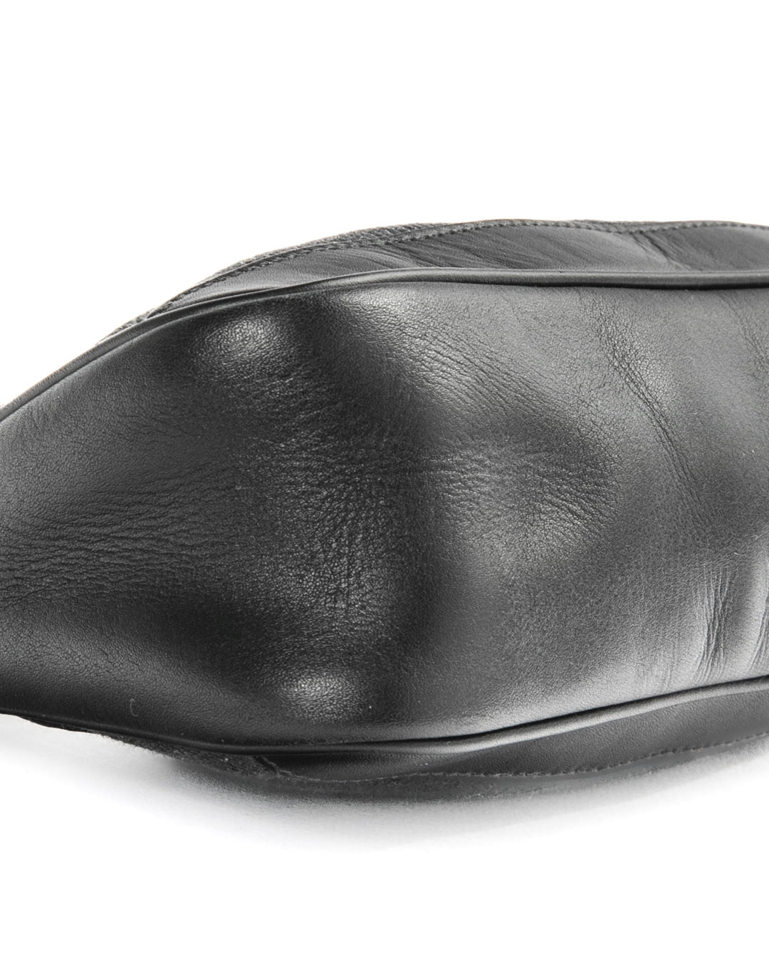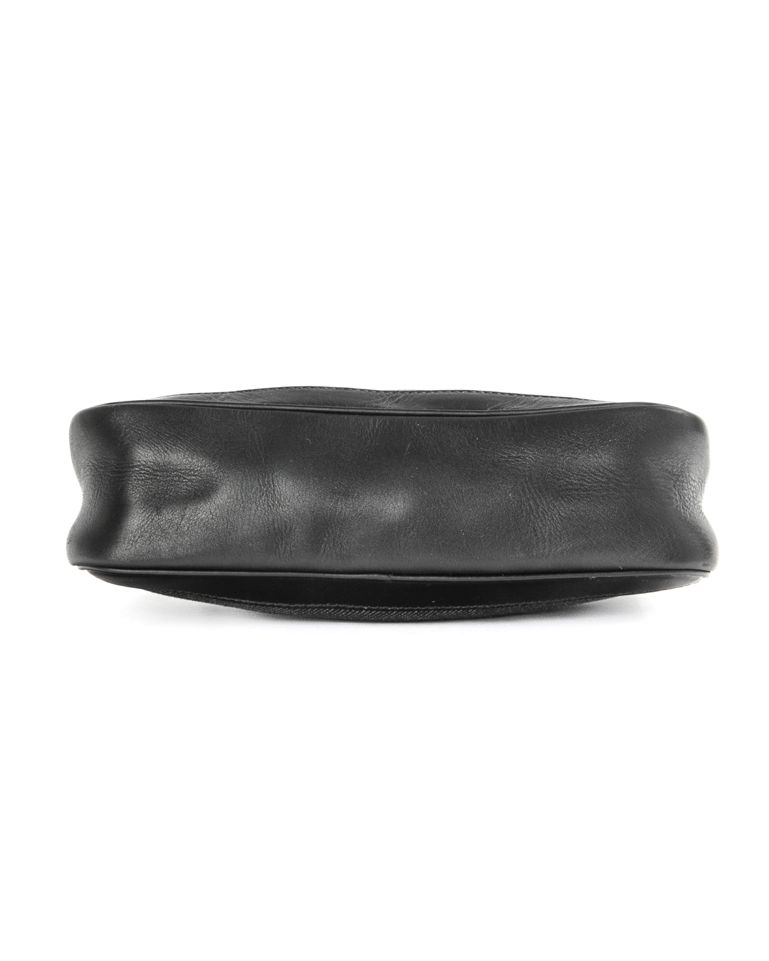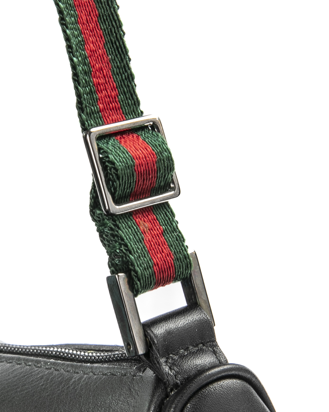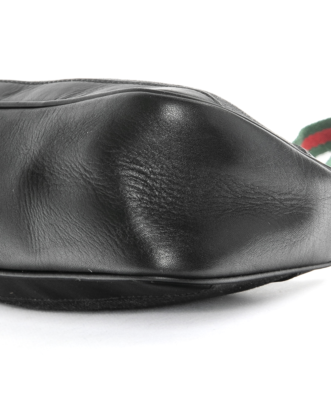 Pochette firmata Gucci, misura mini, realizzata in denim nero con rifiniture in pelle e hardware argento. Dotata di una chiusura superiore a zip, internamente rivestita in tessuto nella fantasia GG Supreme, la pochette è capiente per l'essenziale. Munita di un manico in tessuto nella classica fascia web, per una comoda portata a spalla o a mano. L'articolo si presenta in buone condizioni.