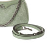 Borsa firmata Gucci, linea Ophidia, realizzata in tela nella classica fantasia GG Supreme con inserti in pelle azzurro con hardware argento. Dotata di una chiusura superiore a zip, internamente rivestita in tela tono su tono con piccola tasca, la borsa è abbastanza capiente. Munita di un manico in catena e di una tracolla in pelle rimovibile, per una comoda portata a spalla o a tracolla. L’articolo si presenta in condizioni pari al nuovo.