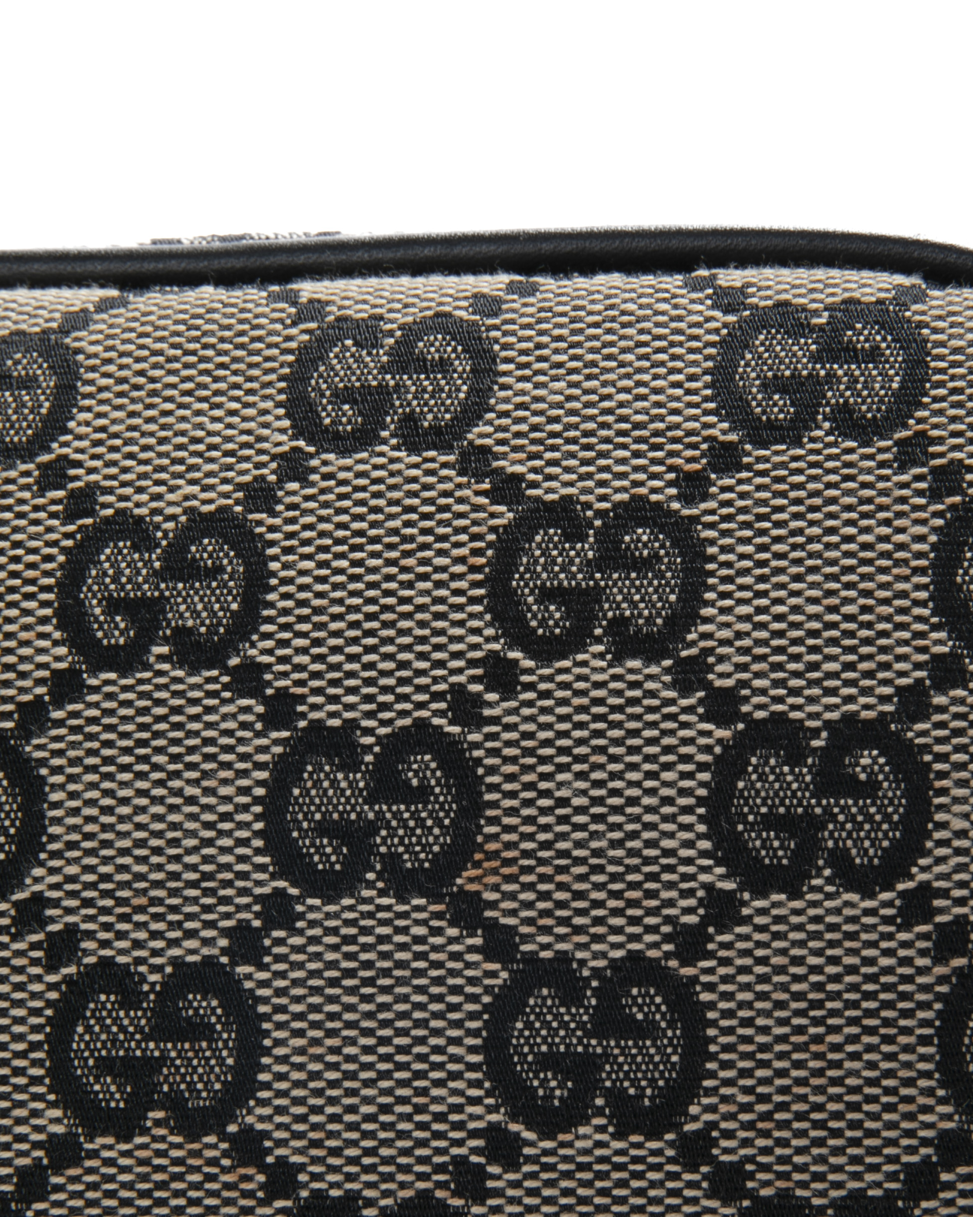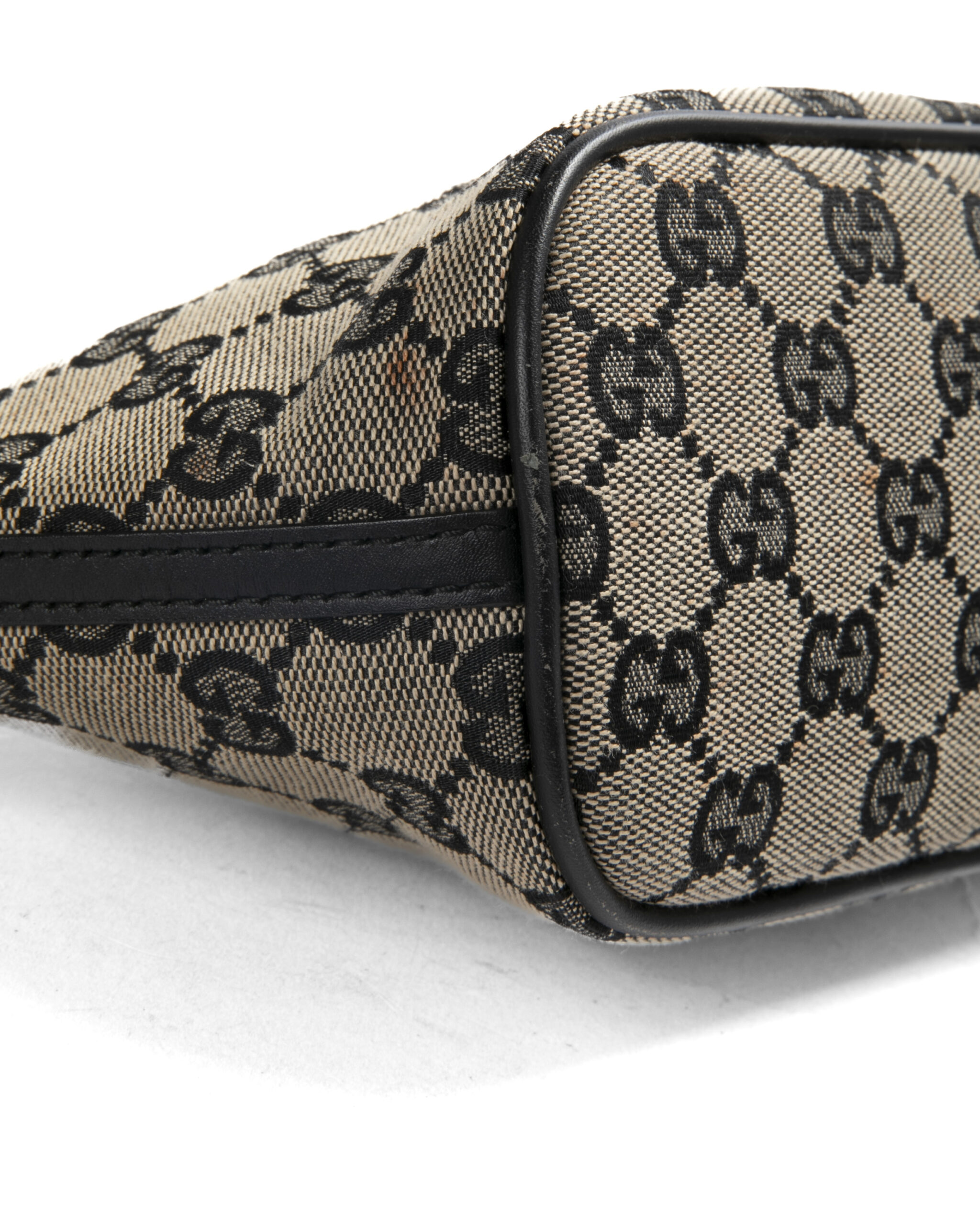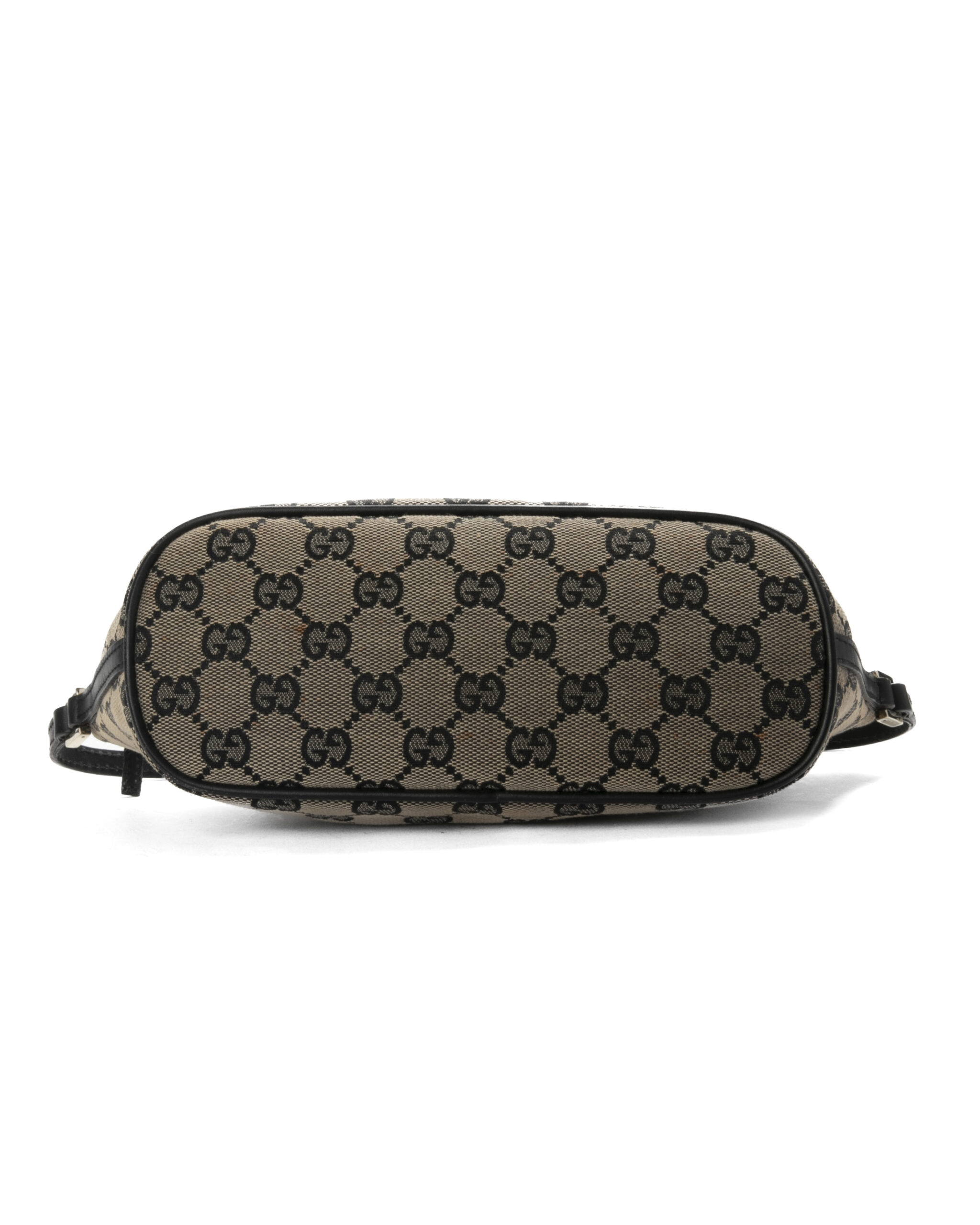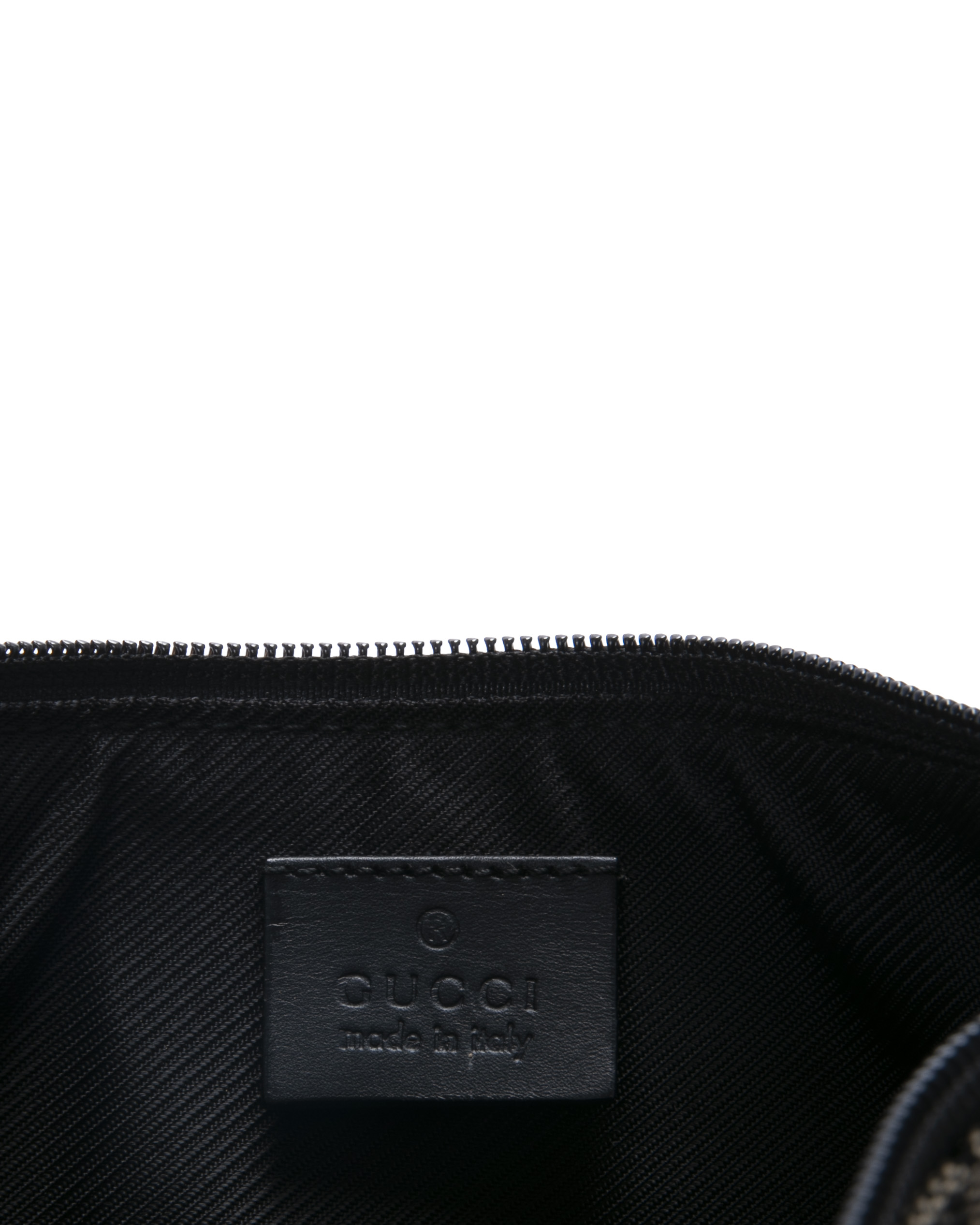 Borsa firmata Gucci, misura small, realizzata in tela nella fantasia gg supreme con inserti in pelle blu e hardware argento. Dotata di una chiusura superiore a zip, internamente in tela blu, la borsa è capiente per l’essenziale. Munita di un manico in pelle, per una comoda portata a spalla o a mano.