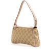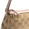Borsa firmata Gucci, misura small, realizzata in tela nella classica fantasia GG Supreme con inserti in pelle rosa e hardware dorato. Dotata di una chiusura superiore a zip, internamente rivestita in tessuto marrone, la borsa è capiente per l’essenziale. Munita di un manico in pelle rosa, per una comoda portata a mano o a spalla. L’articolo si presenta in buone condizioni.