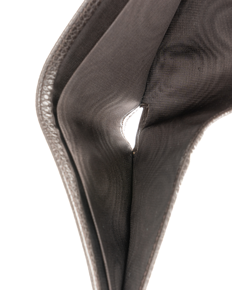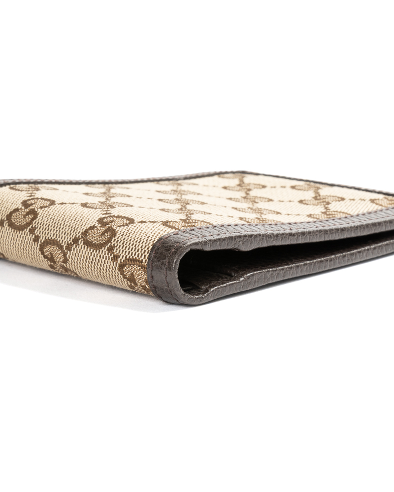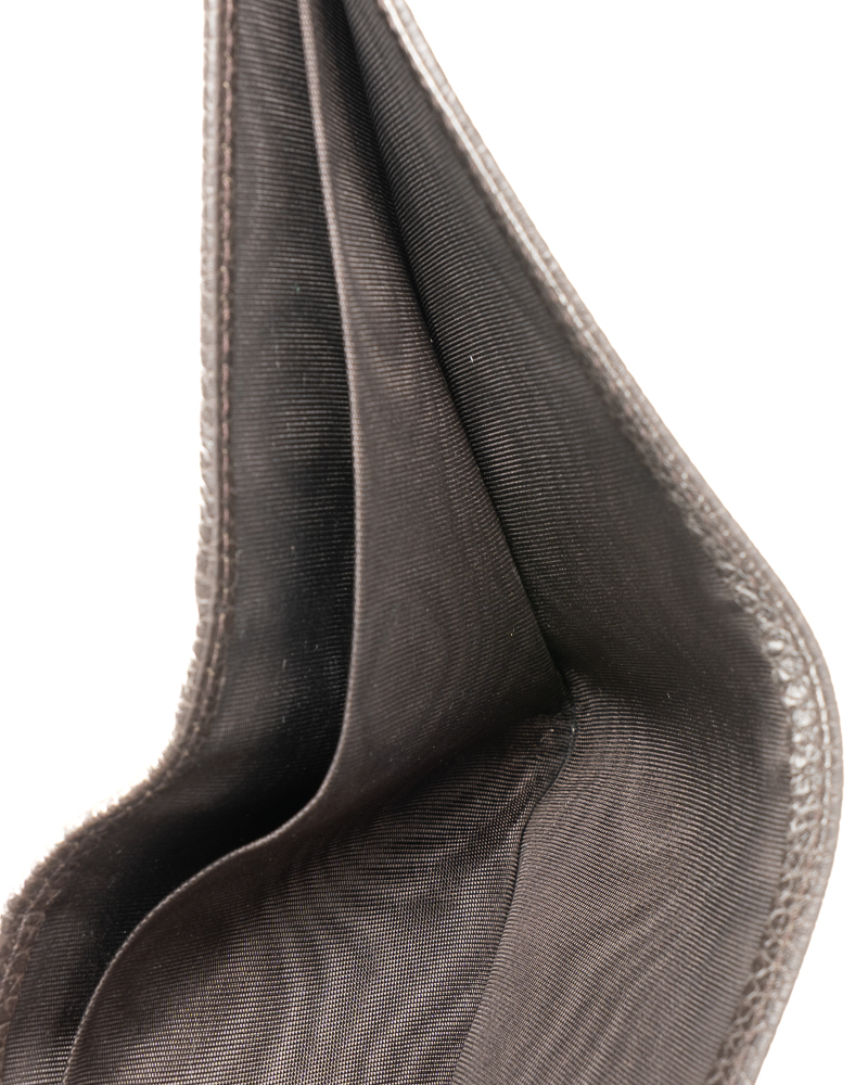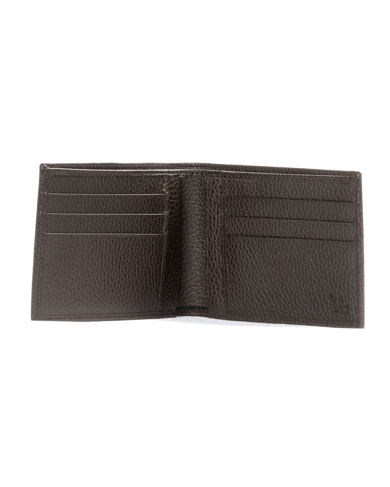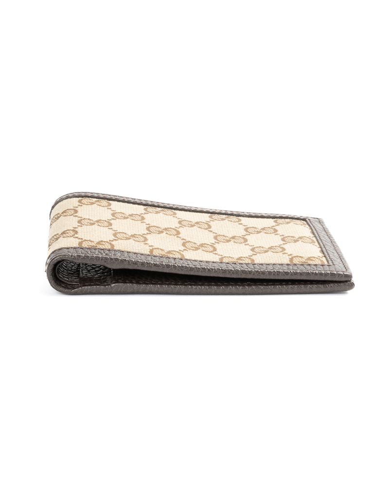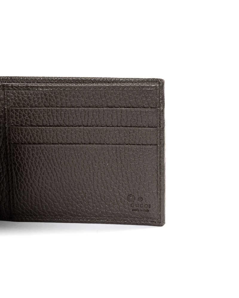 Portafoglio firmato Gucci, realizzato in tela nella classica fantasia GG Supreme con inserti in pelle marrone. Non è dotato di nessuna chiusura, internamente rivestito in pelle marrone, con molteplici tasche, comodo per documenti e banconote. L’articolo si presenta in ottime condizioni.