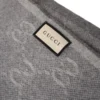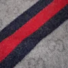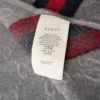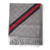 Sciarpa Firmata Gucci, realizzata in lana grigia con la classica fantasia web blu e rossa. Misura 190 centimetri di lunghezza e 37 centimetri di altezza. Presenta un elegante bordo sfrangiato. L’articolo si presenta in condizioni pari al nuovo.