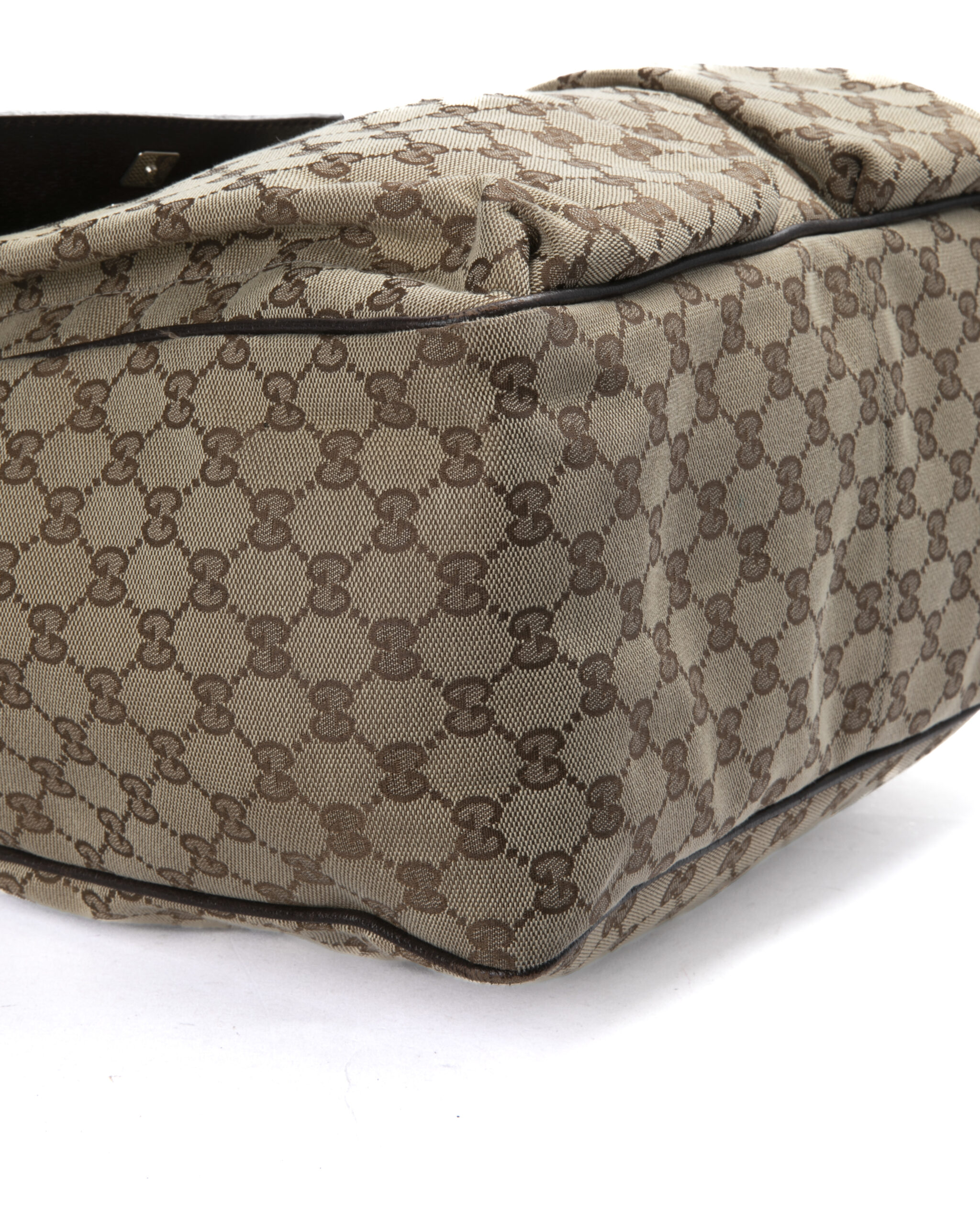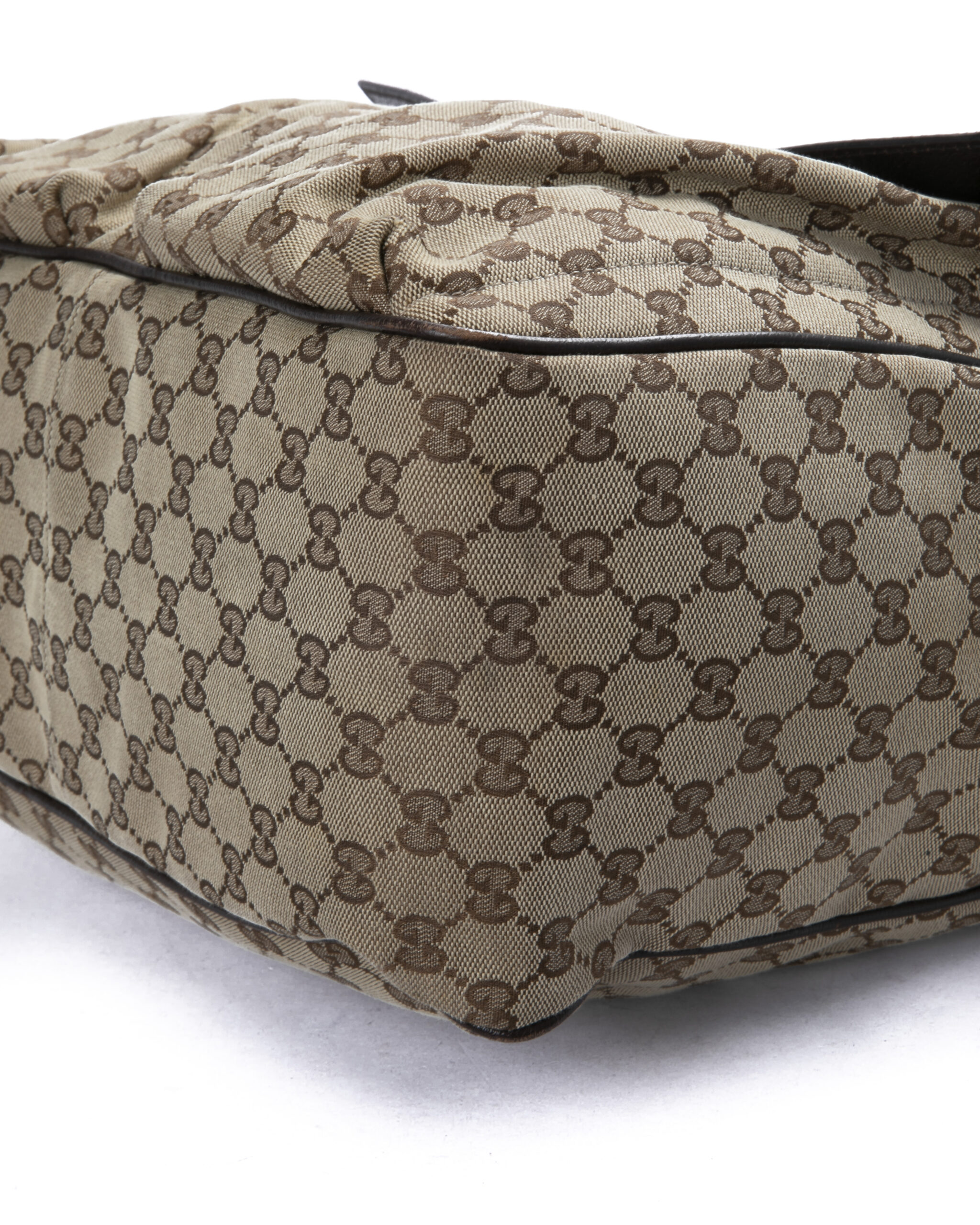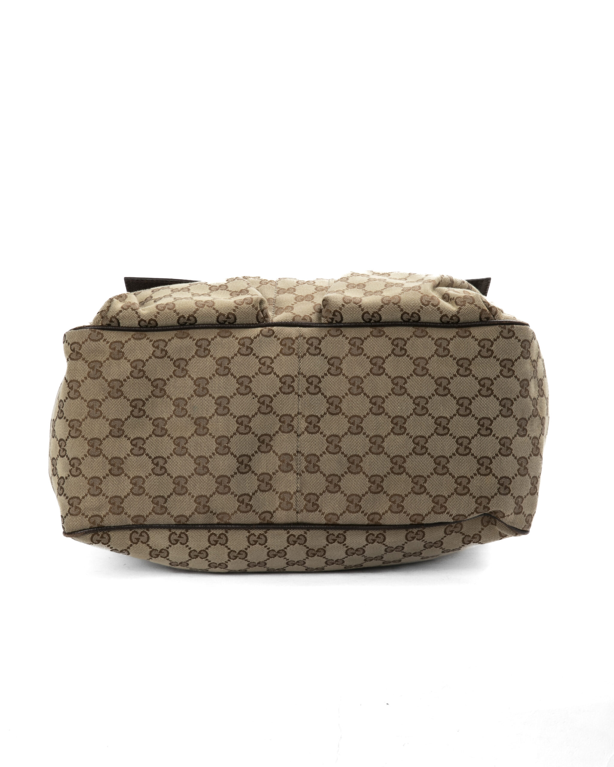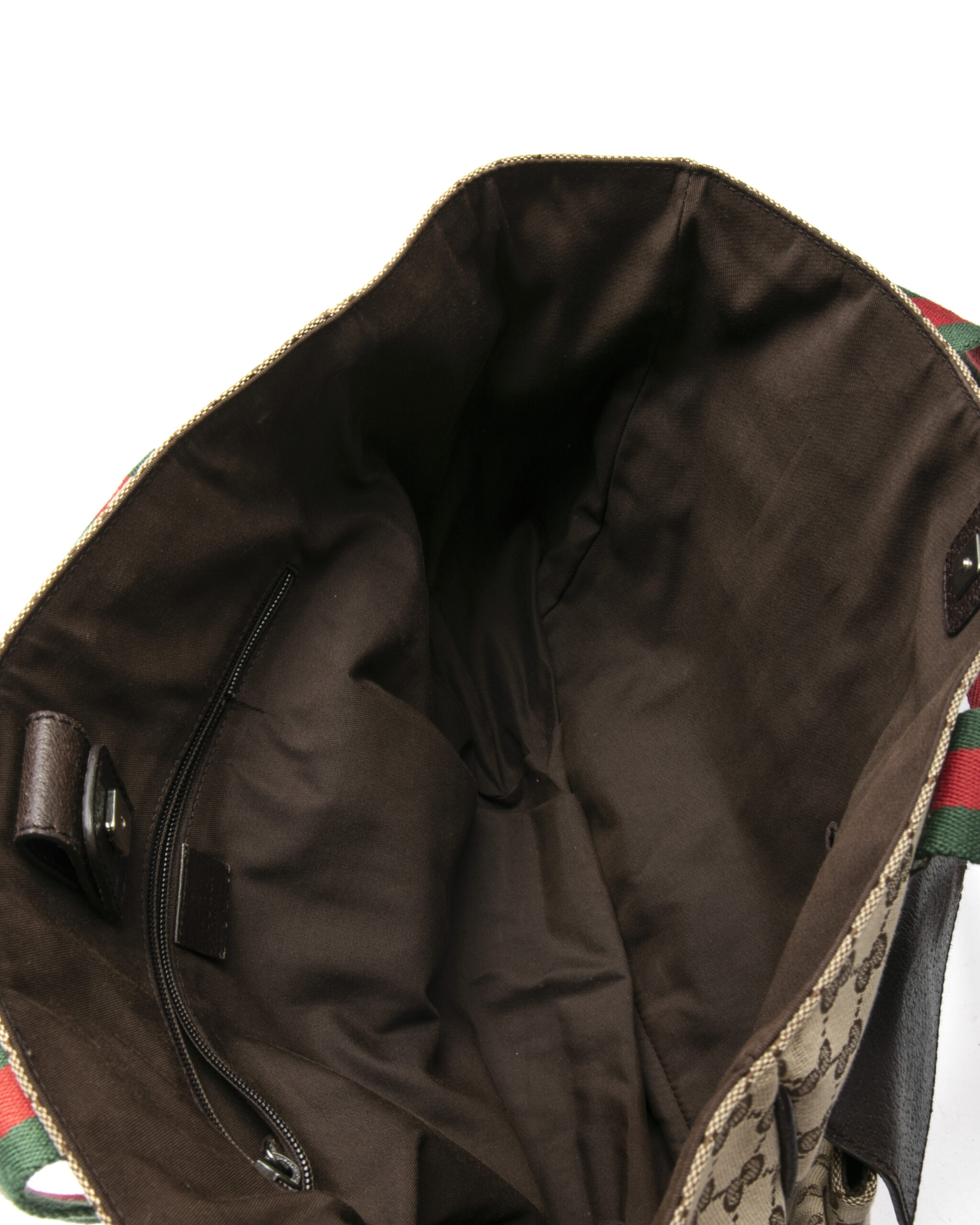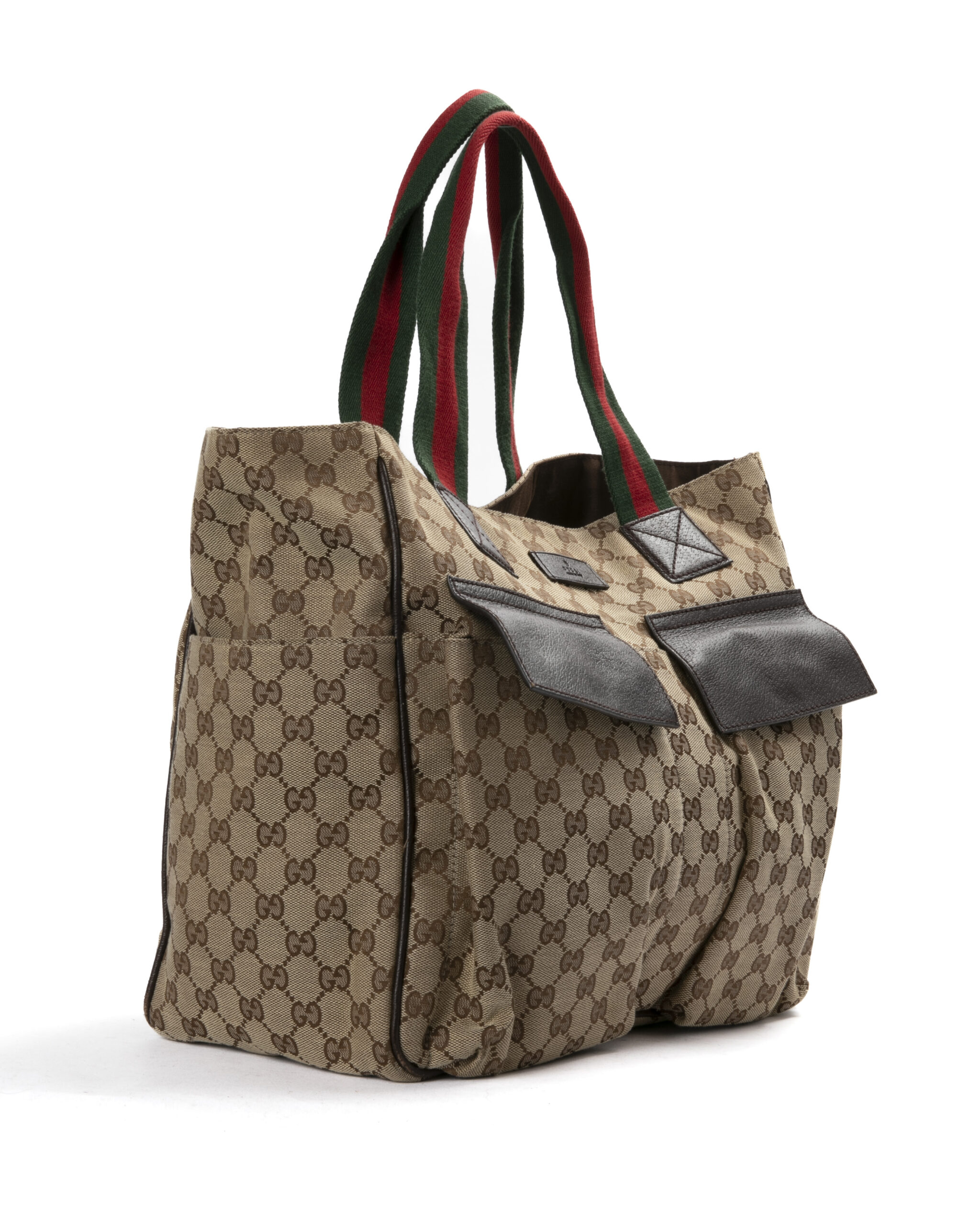 Borsa firmata Gucci, modello shopper nella misura large, realizzata in tela marrone nella classica fantasia gg supreme con inserti in pelle marrone e hardware argento. Dotata di una chiusura calamitata, internamente rivestita in tessuto marrone con comode tasche, la borsa è abbastanza capiente. Munito di doppio manico in tessuto nella fantasia web, per una comoda portata a spalla o a mano. Arricchita da due comode tasche con chiusura calamitata sulla parte frontale. L’articolo si presenta in buone condizioni, con segni di usura visibili in foto.