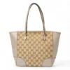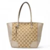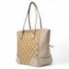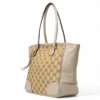 Borsa firmata Gucci, modello shopper Square nella misura small, realizzata in tela nella classica fantasia GG Supreme con inserti in pelle fango e hardware dorato. Dotata di una chiusura superiore a zip, internamente rivestita in tela beige con comode tasche, la borsa è abbastanza capiente. Munita di doppio manico in pelle, per una comoda portata a spalla o a mano. L’articolo si presenta in buone condizioni, con segni di usura visibili in foto.