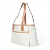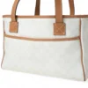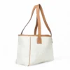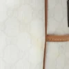 Borsa firmata Gucci, modello Task, misura small, realizzata in tela bianca con classica fantasia GG Supreme e rifiniture in pelle marrone. Non è dotata di nessuna chiusura, internamente rivestita in tessuto tono su tono e presenta comode tasche con e senza zip, la borsa è abbastanza capiente. Dotata di doppi manici in pelle per una pratica portata a spalla. L’articolo si presenta in buone condizioni con segni di usura visibili in foto.