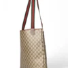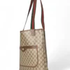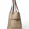 Borsa firmata Gucci, linea Ophidia, realizzata in tela nella classica fantasia GG Supreme con inserti in pelle e hardware dorato. Non è dotata di nessuna chiusura, internamente rivestita in tela marrone, la borsa è molto capiente. Munita di doppio manico in tessuto, per una comoda portata a spalla o a mano. Presenta una comoda tasca aperta sulla parte frontale. L’articolo si presenta in buone condizioni, con piccoli segni di usura visibili in foto.