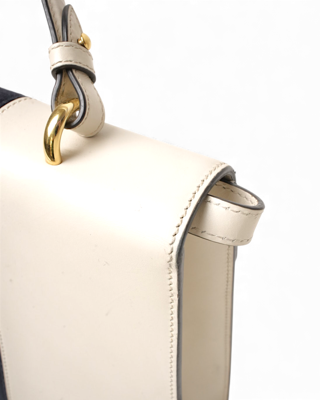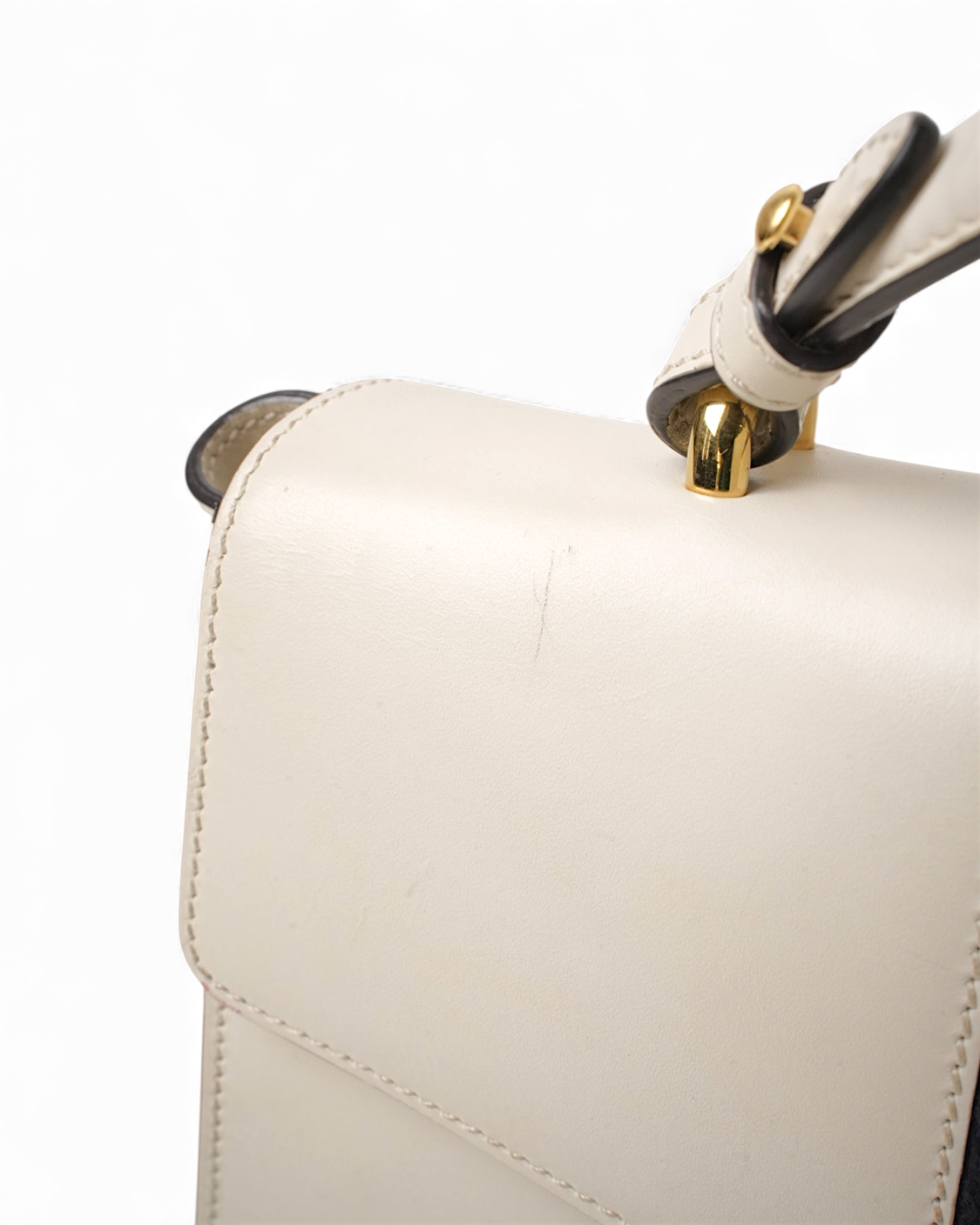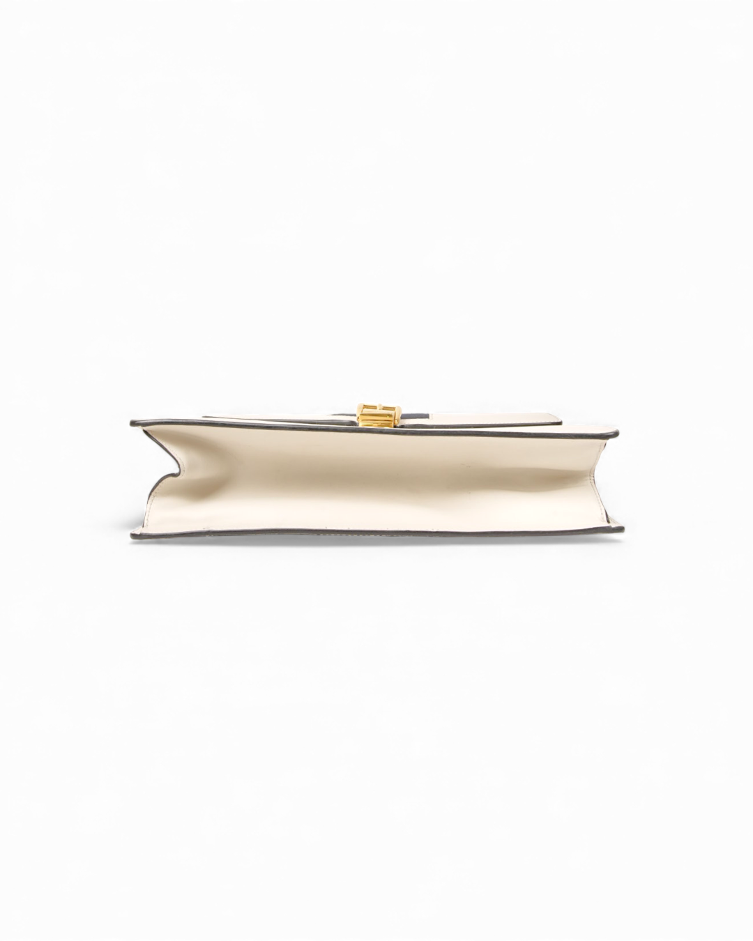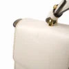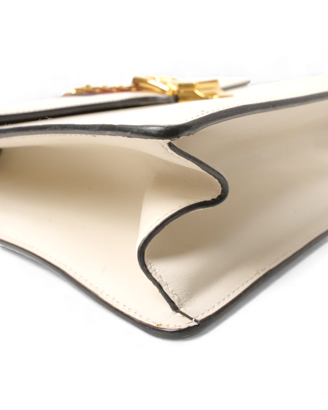 Borsa firmata Gucci, modello Silvye nella misura large, realizzata in pelle box bianca con hardware dorato. Dotata di una patta con chiusura ad incastro, internamente rivestita in tessuto scamosciato beige con comoda tasca, la borsa è abbastanza capiente. Munita di un manico e di una tracolla rimovibile e regolabile, per una comoda portata a spalla o a tracolla. Arricchita dalla classica fascia web blu e rossa. L’articolo si presenta in buone condizioni, con piccoli segni di usura visibili in foto.