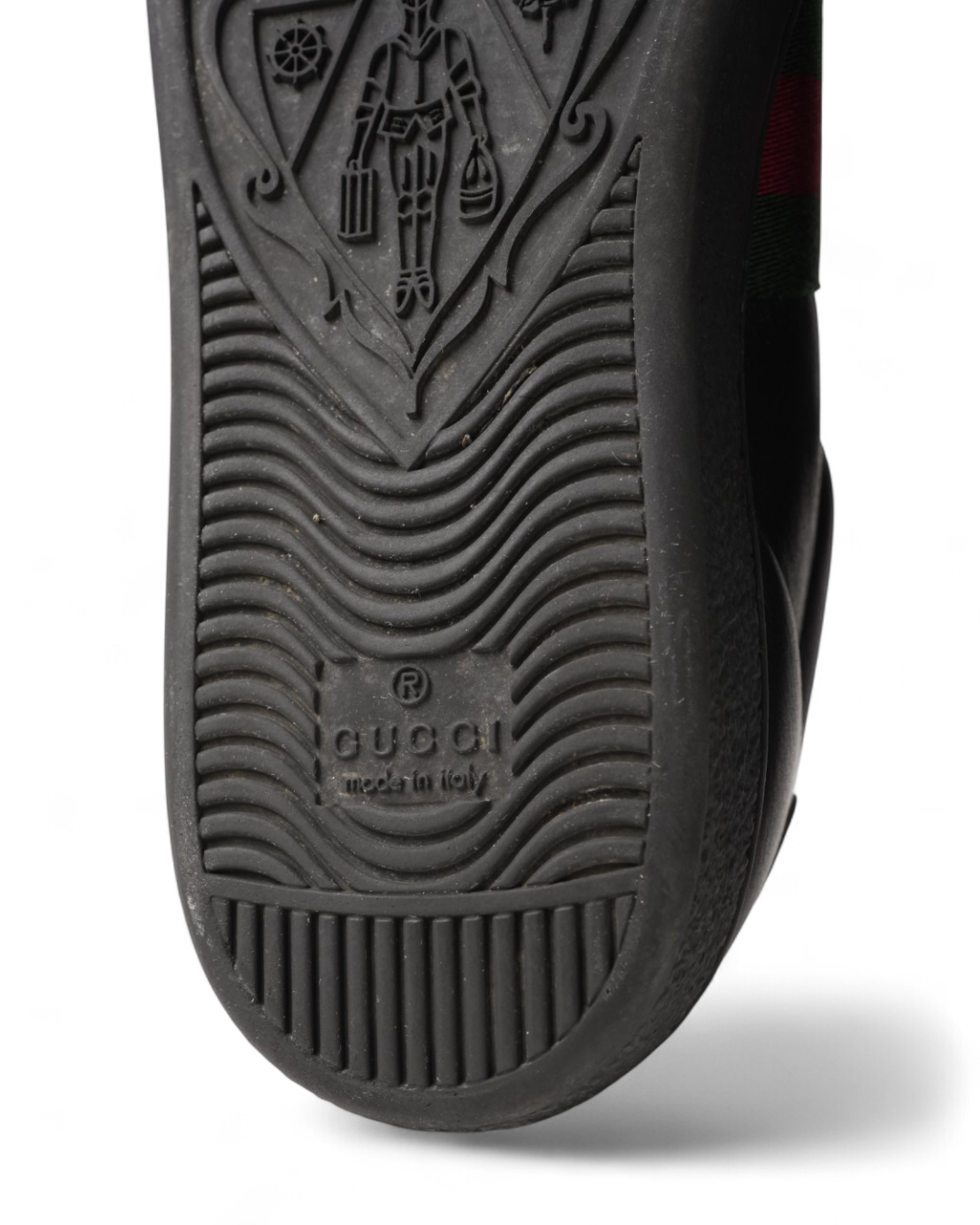 Sneakers firmate Gucci, modello Ace Heart, realizzate in pelle nera con classica fascia web in tessuto e decoro sul lato. La suola in gomma offre confort e resistenza. Numero 37 IT. L’articolo si presentano in ottime condizioni.