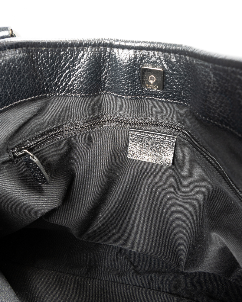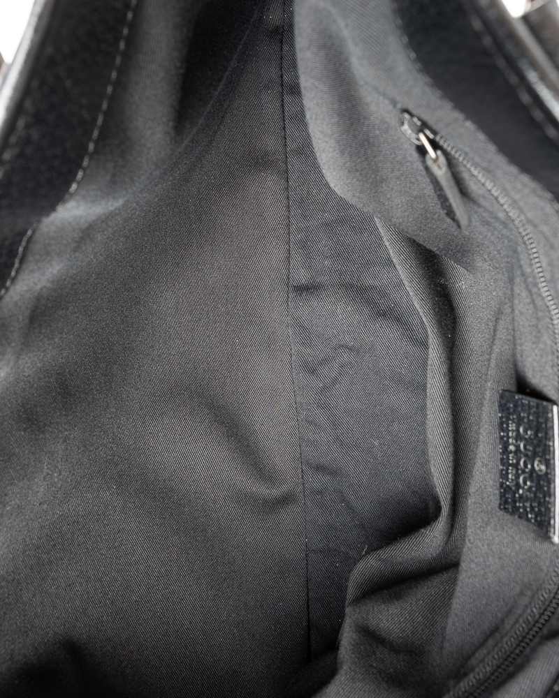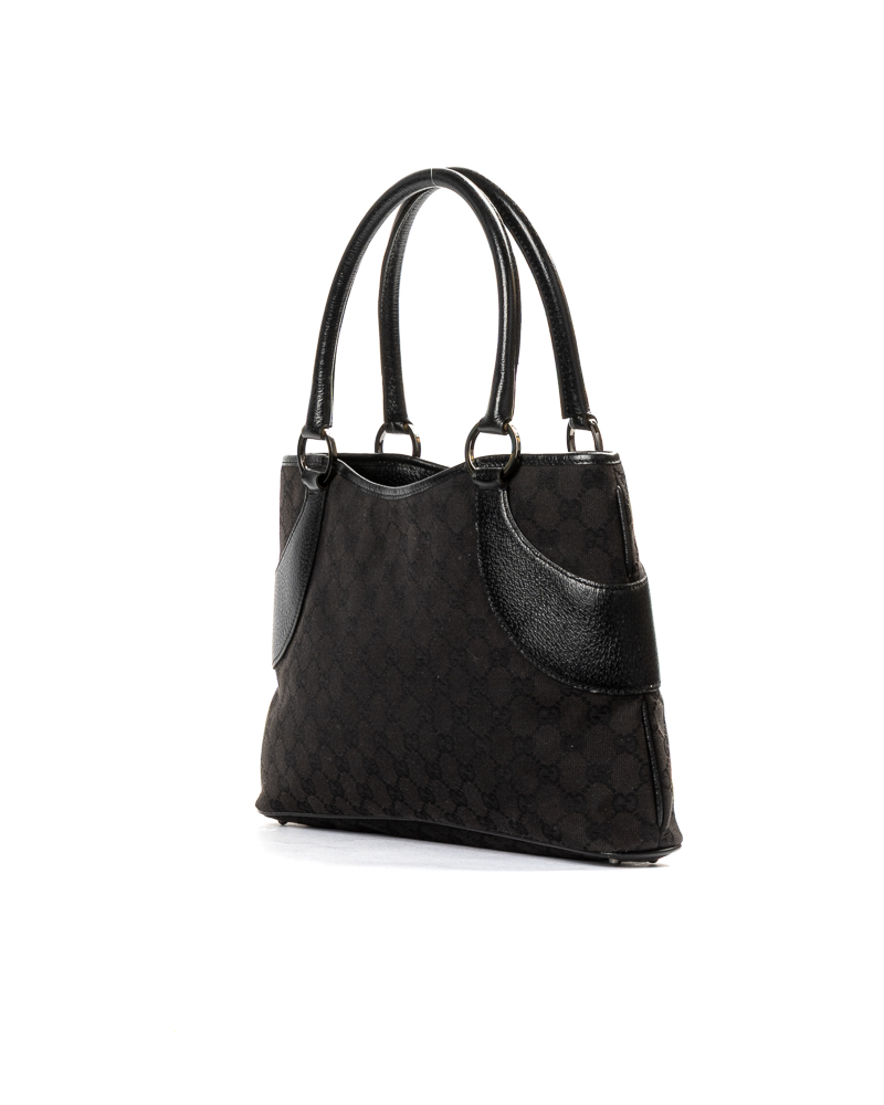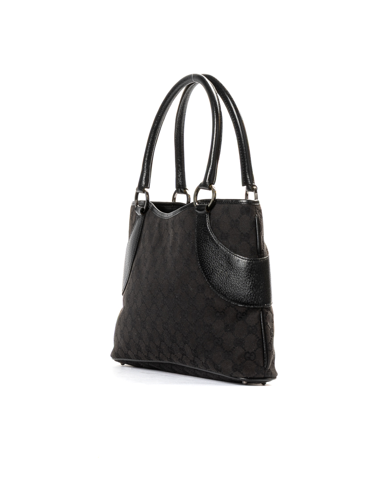 Borsa firmata Gucci, modello Tote Indy nella misura medium, realizzata in tessuto nella classica fantasia GG Supreme con inserti in pelle nera e hardware argento. Dotata di una chiusura calamitata, internamente rivestita in tessuto nero con comoda tasca, la borsa è abbastanza capiente. Munita di doppio manico in pelle, per una comoda portata a mano o a spalla. L’articolo si presenta in buone condizioni.