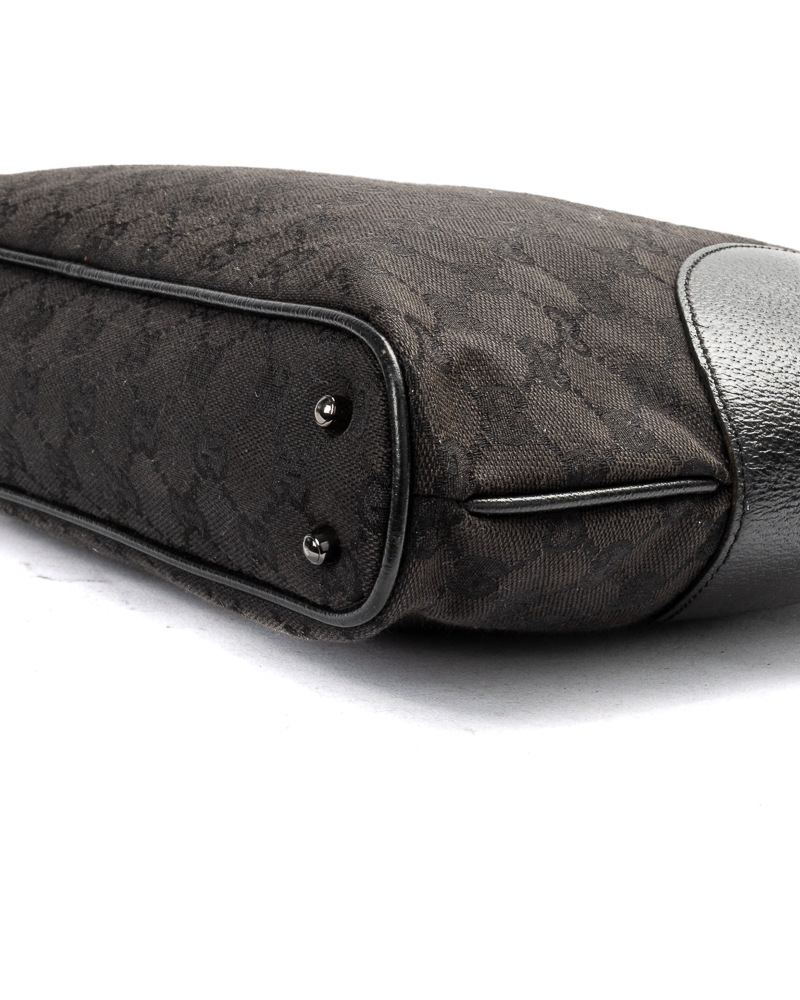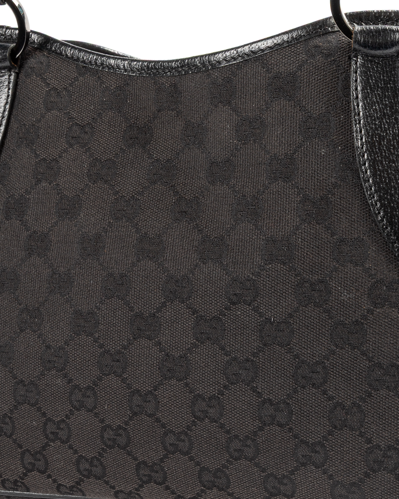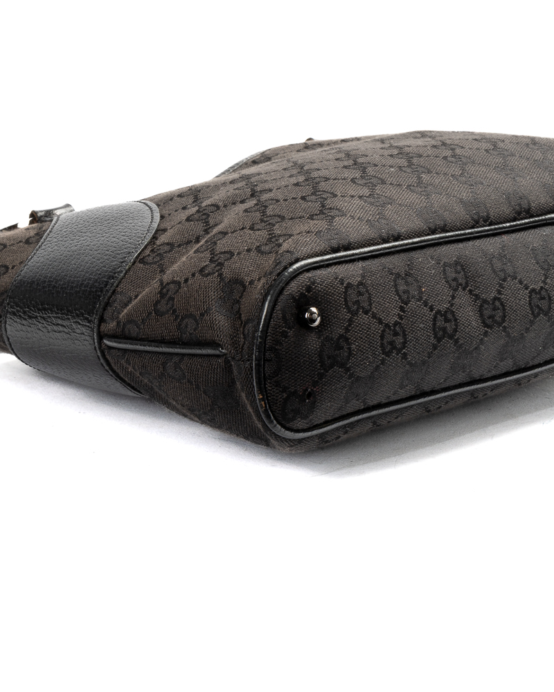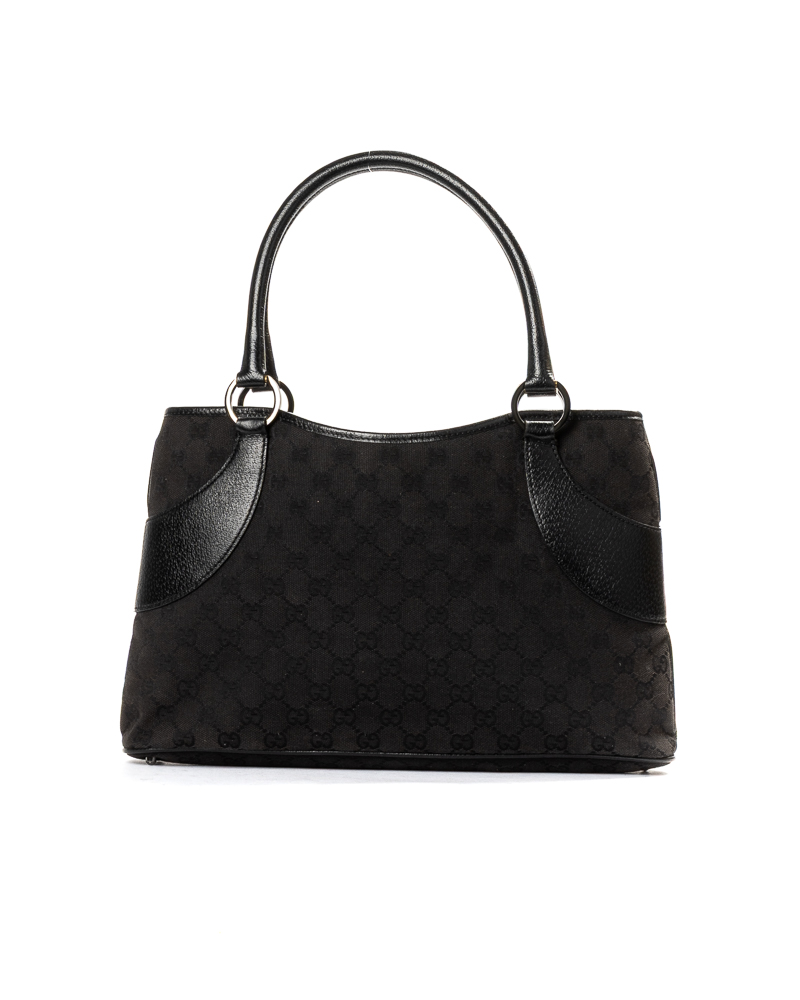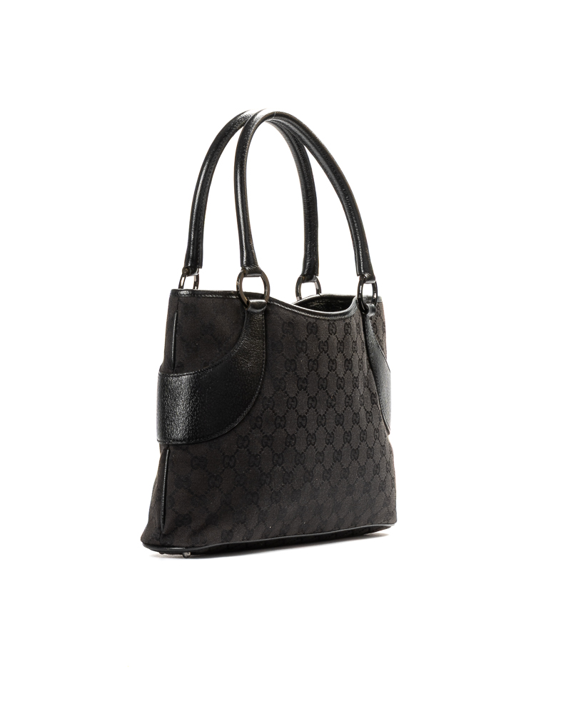 Borsa firmata Gucci, modello Tote Indy nella misura medium, realizzata in tessuto nella classica fantasia GG Supreme con inserti in pelle nera e hardware argento. Dotata di una chiusura calamitata, internamente rivestita in tessuto nero con comoda tasca, la borsa è abbastanza capiente. Munita di doppio manico in pelle, per una comoda portata a mano o a spalla. L’articolo si presenta in buone condizioni.