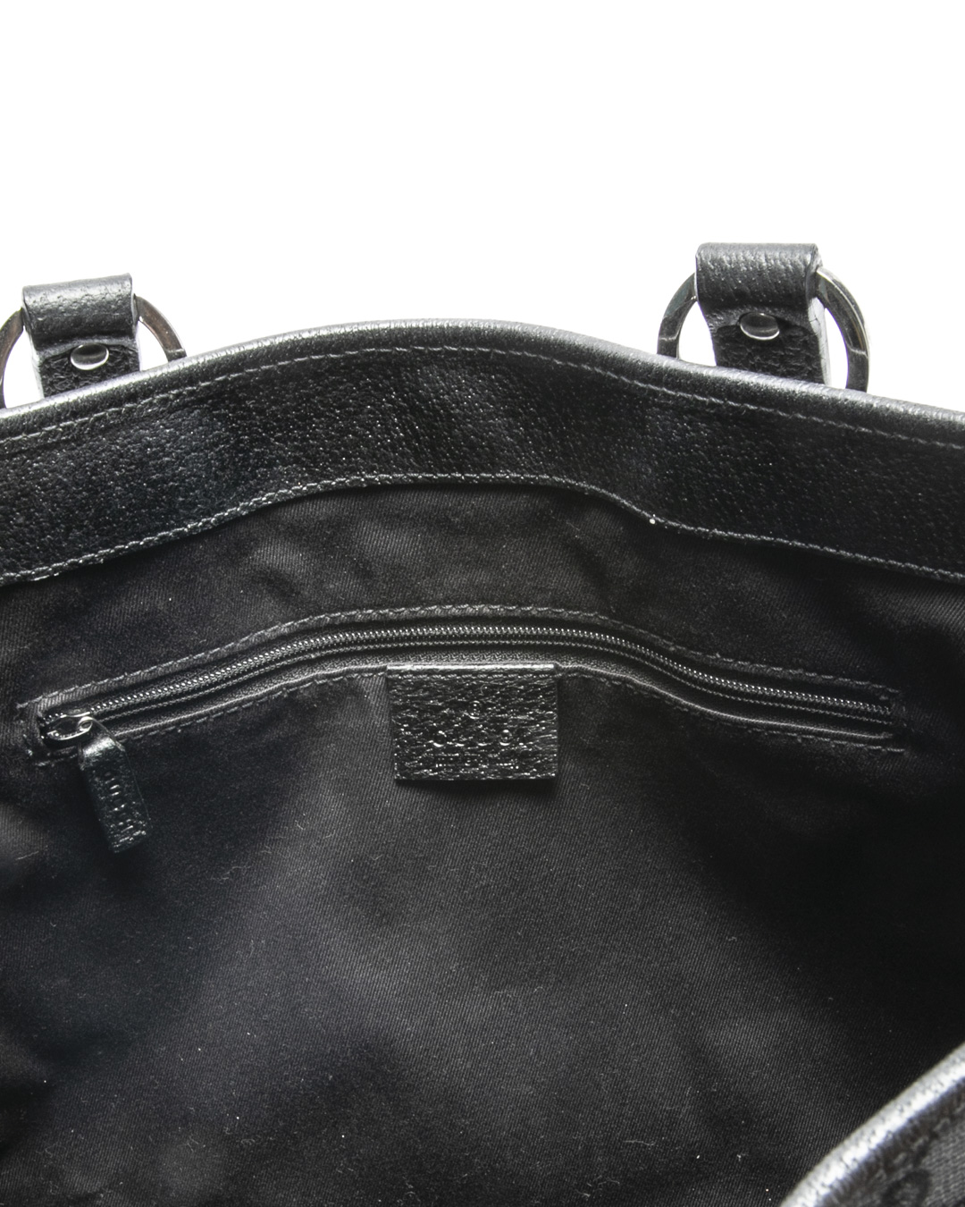 Borsa firmata Gucci, modello Tote nella misura small, realizzata in tela nella classica fantasia GG Supreme con inserti in pelle e hardware argento. Non è dotata di nessuna chiusura, internamente rivestita in tessuto nero con comoda tasca, la borsa è abbastanza capiente. Munita di doppio manico in pelle, per una comoda portata a spalla o a mano. L'articolo si presenta in buone condizioni, con segni di usura visibili in foto.