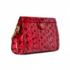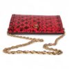 Borsa firmata Gucci, linea Ophidia, realizzata in pelle pitonata rossa con hardware dorato. Dotata di doppia chiusura calamitata, internamente rivestita in pelle beige con comodo scompartimento e piccola tasca, la borsa è abbastanza capiente. Munita di una tracolla in catena dorata, per una comoda portata a mano come pochette o a spalla. L’articolo si presenta in condizioni pari al nuovo.