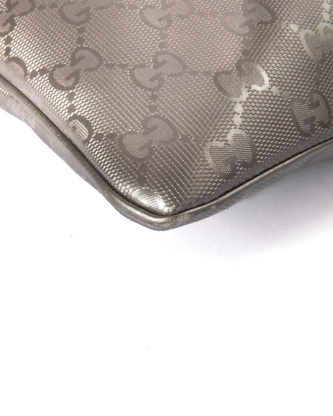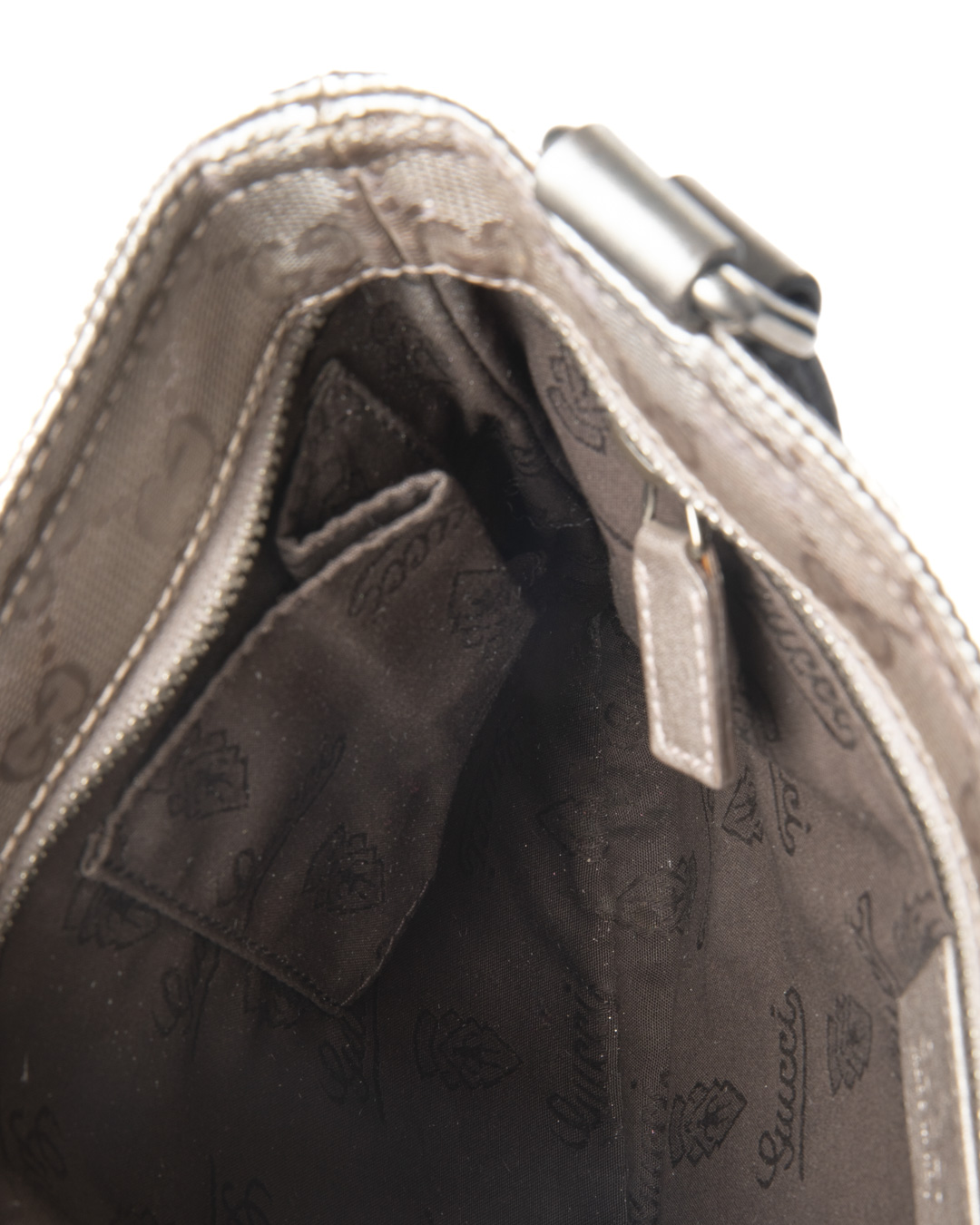 Borsa firmata Gucci, misura small, realizzata in pelle crystal rosa nella classica fantasia GG e hardware argento. Dotata di una chiusura superiore a zip, internamente rivestita in tela logata marrone con due comode tasche, la borsa è capiente per l’essenziale. Munita di una tracolla regolabile, per una comoda portata a spalla o a tracolla. L’articolo si presenta in buone condizioni.