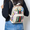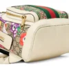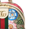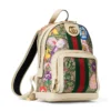 Zaino firmato Gucci, linea Ophidia nella misura small, realizzata in tela nella fantasia GG con stampa flora e hardware dorato. Dotata di una chiusura semicircolare a zip con doppio cursore, internamente rivestita in tela beige con comode tasche, lo zaino è abbastanza capiente. Munito di doppio manico in pelle regolabile, per una comoda portata a spalla. Arricchito da una comoda tasca sulla parte frontale con chiusura a zip. L’articolo si presenta in buone condizioni, con segni di usura visibili in foto.