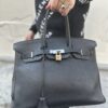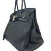 Borsa firmata Hermès, modello Birkin, misura 35, realizzata in pelle Togo, morbida al tatto e con venature leggere, colore Plomb, pari al nero. Dotata della classica patta ad incastro, con chiusura a fascia orizzontale, lucchetto e chiavi. Internamente rivestita nella stessa pelle, dello stesso colore, molto capiente, con presenta di tasche, con e senza zip. Munita di doppio manico in pelle rigida per portata a mano. Anno di produzione 2007, si presenta in ottime condizioni.