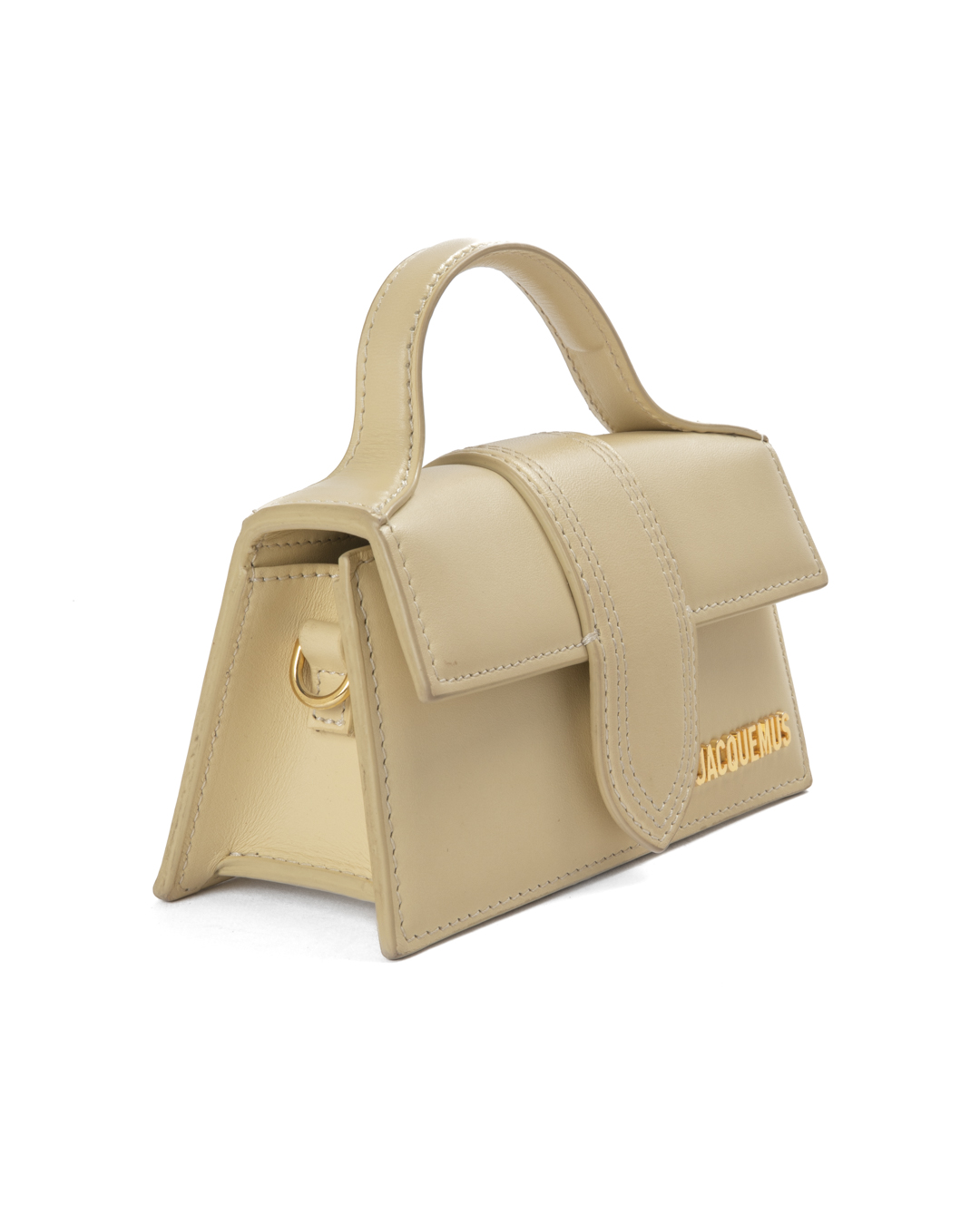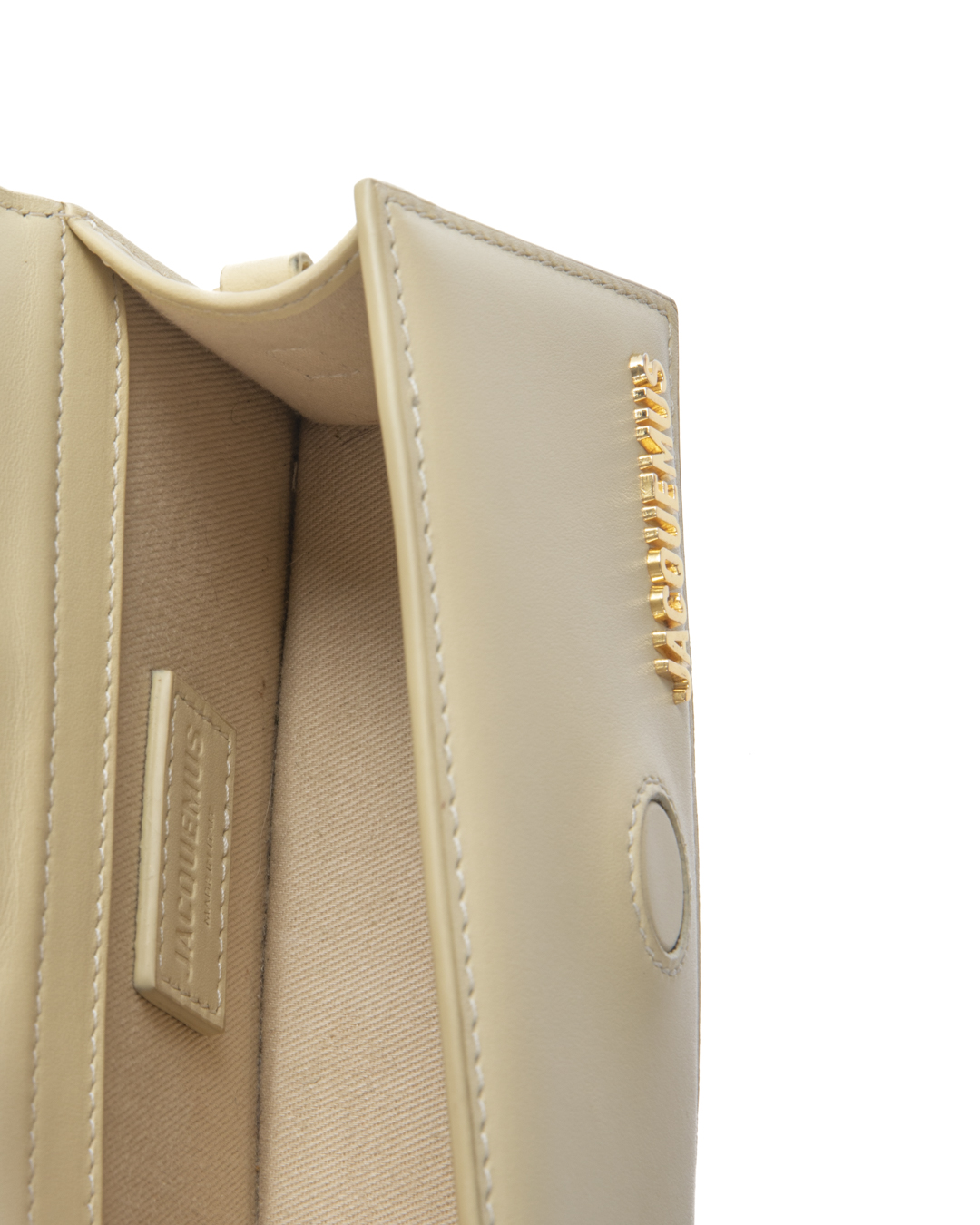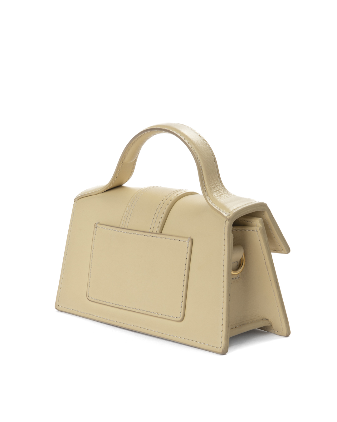 Borsa firmata Jacquemus, modello Le Bambino Mini, realizzata in pelle liscia crema e hardware dorato. Dotata di una patta frontale con chiusura a bottone calamitato, internamente rivestita in tela beige, capiente per l’essenziale. Munita di un manico rigido centrale per portata a mano e di una tracolla rimovibile e regolabile per una portata a spalla. L' articolo si presenta in buone condizioni, con segni di usura visibili in foto.