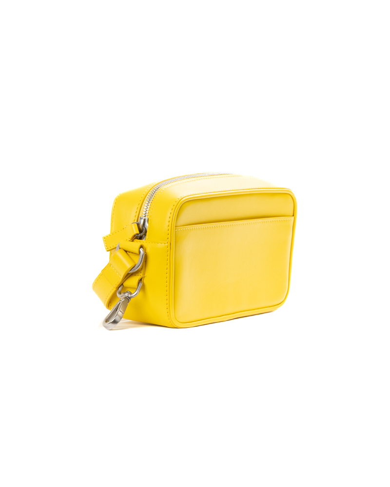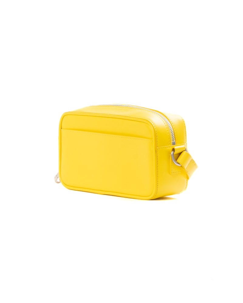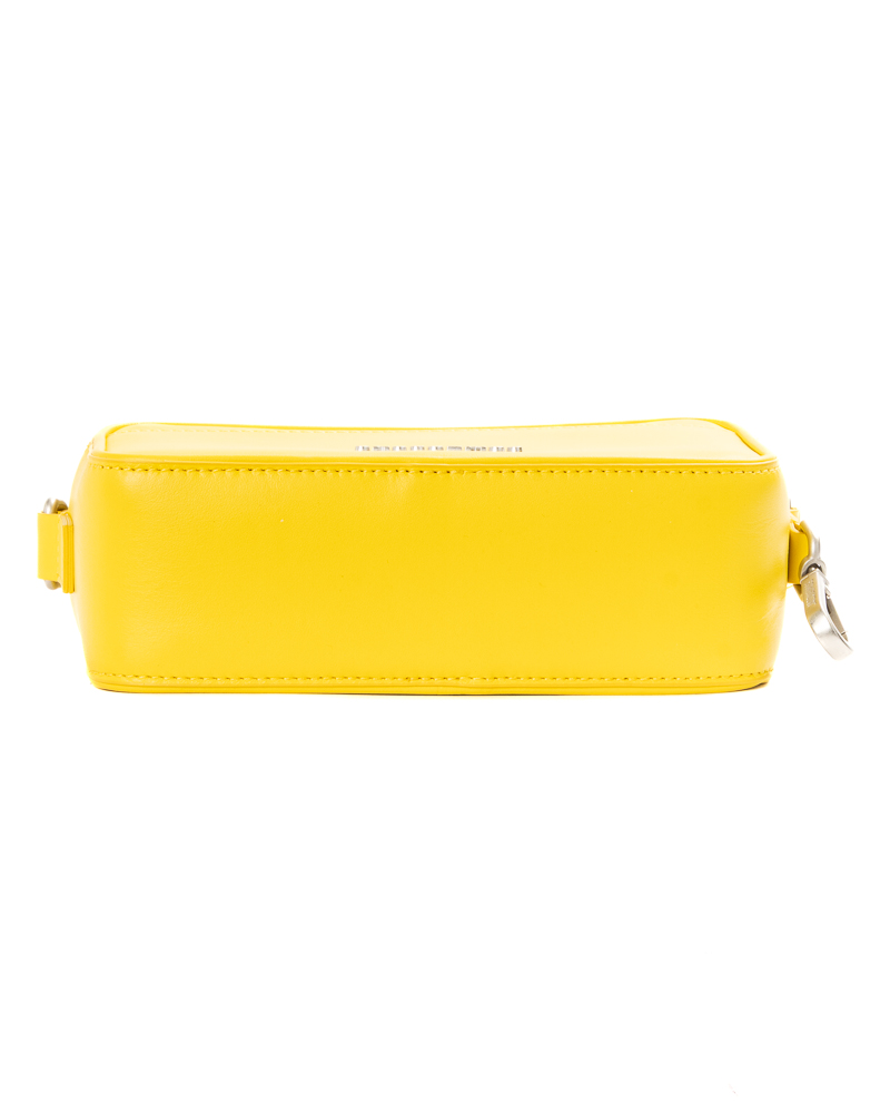 Borsa firmata Jacquemus, modello Le Baneto Camera Bag nella misura small, realizzata in pelle gialla con hardware argento. Dotata di una chiusura superiore a zip, internamente rivestita in tela beige con piccola tasca, la borsa è abbastanza capiente. Munita di una tracolla regolabile, per una comoda portata a spalla o a tracolla. Completa di una comoda tasca aperta, sulla parte frontale. L'articolo si presenta in condizioni pari al nuovo.