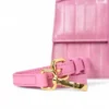 Borsa firmata Jacquemus, modello Le Grand Bambino, realizzata in pelle rosa con motivo anguilla e hardware dorati. Dotata di una patta frontale con chiusura a bottone calamitato, internamente rivestita in tela beige, capiente per l’essenziale. Munita di un manico rigido centrale per portata a mano e di una tracolla rimovibile e regolabile per una portata a spalla. Completa di dustbag, l’articolo si presenta in condizioni pari al nuovo.