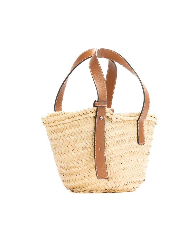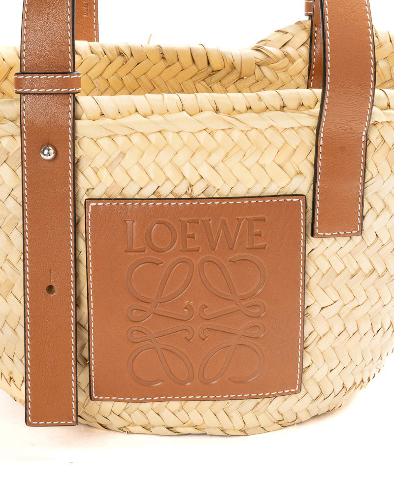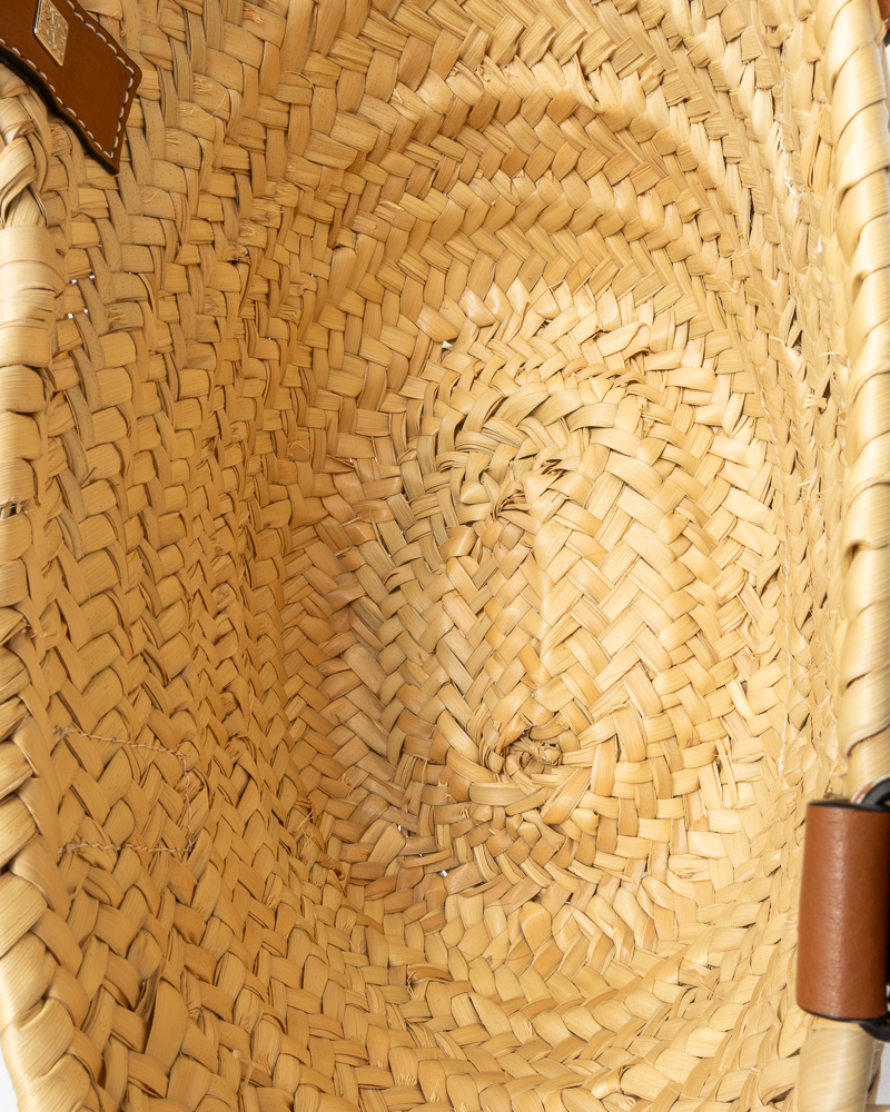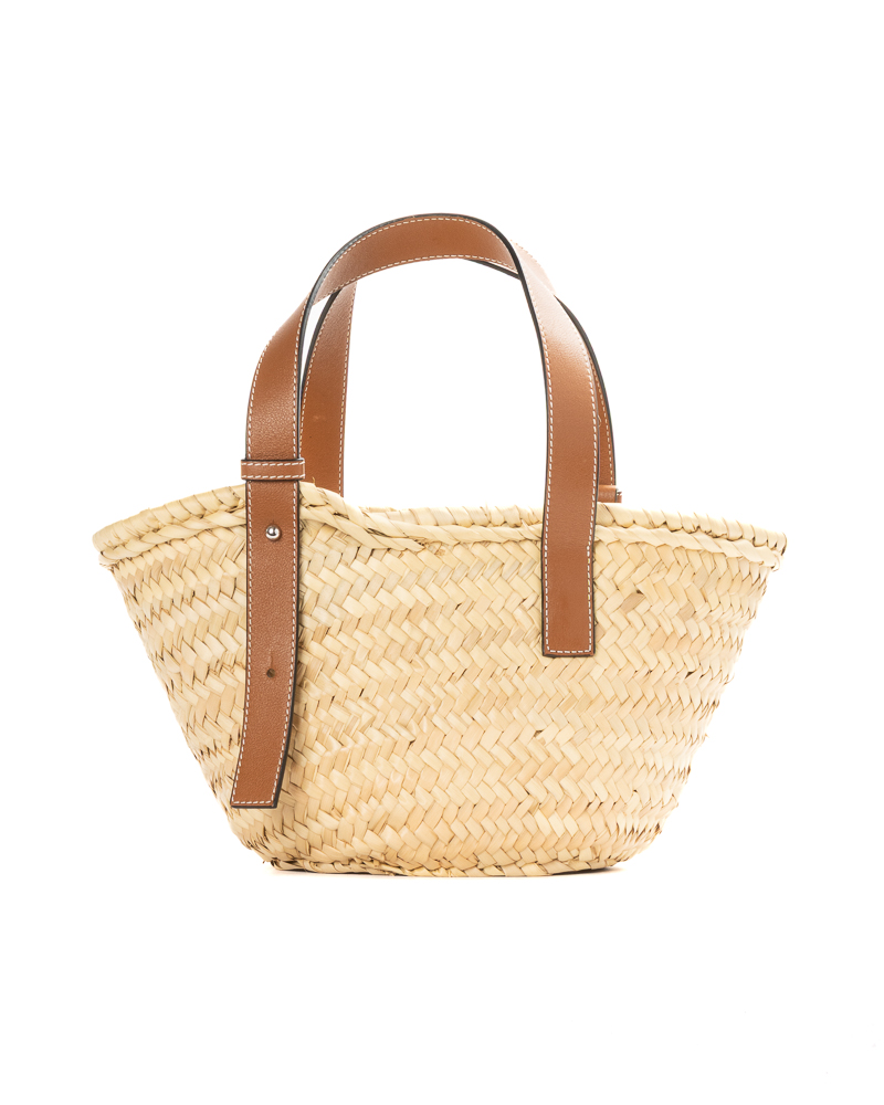 Borsa firmata Loewe, modello Basket nella misura small, realizzata in rafia con rifiniture in pelle beige e hardware dorato. Non è dotata di nessuna chiusura, internamente rivestita in rafia, la borsa è abbastanza capiente. Munita di doppio manico regolabile, per una comoda portata a mano o a spalla. L’articolo si presenta in ottime condizioni.