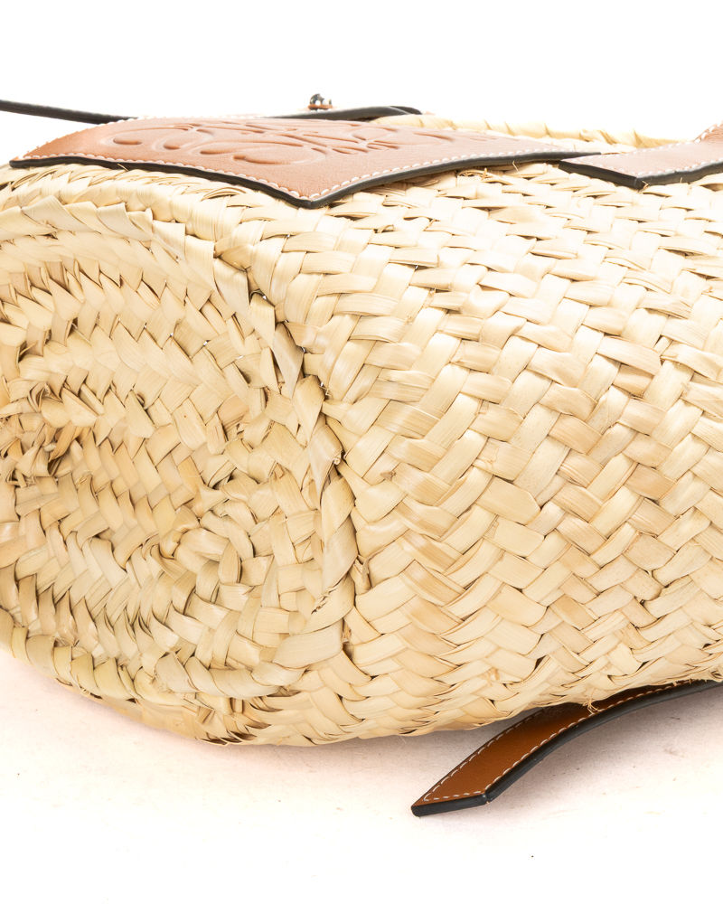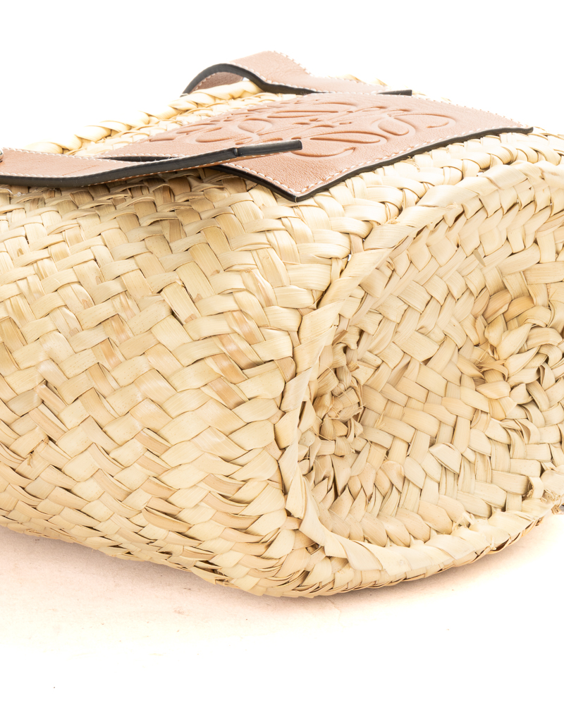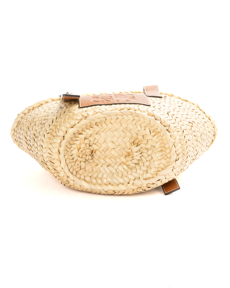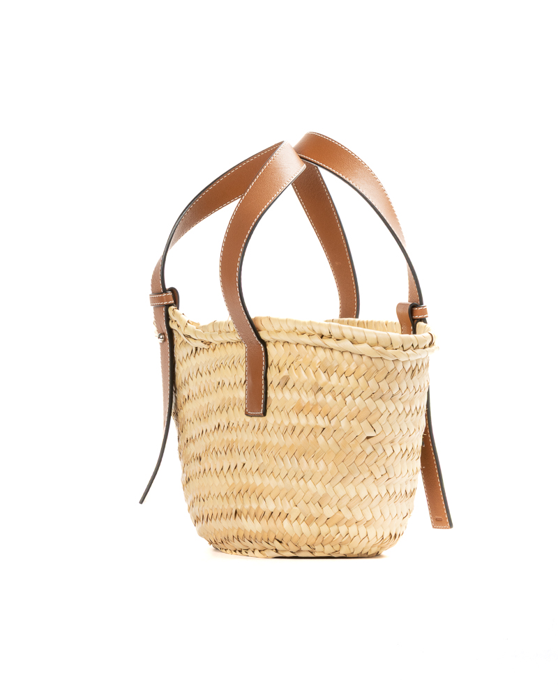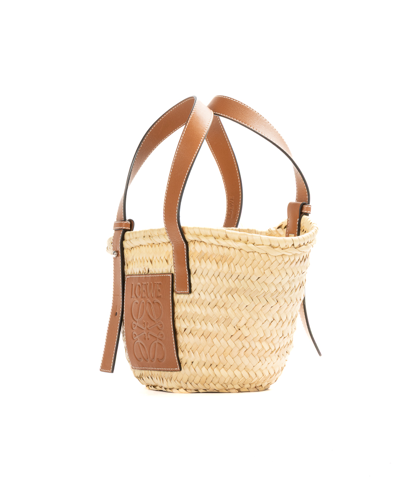 Borsa firmata Loewe, modello Basket nella misura small, realizzata in rafia con rifiniture in pelle beige e hardware dorato. Non è dotata di nessuna chiusura, internamente rivestita in rafia, la borsa è abbastanza capiente. Munita di doppio manico regolabile, per una comoda portata a mano o a spalla. L’articolo si presenta in ottime condizioni.