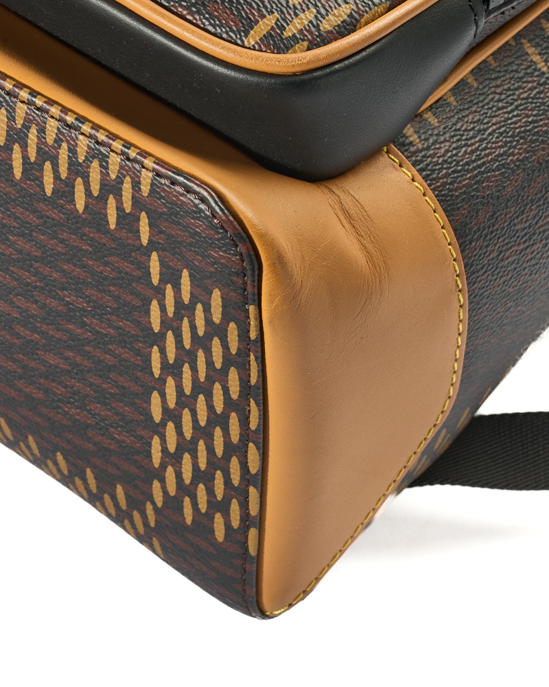 Zaino firmato Louis Vuitton, edizione limitata x Nig, modello Campus nella misura GM, realizzata in tela marrone nella fantasia Damier Giant con rifiniture in pelle e hardware nero, arricchito da patchwork. Dotato di una chiusura semicircolare a zip con doppio cursore, internamente rivestito in tela nera con comode tasche, lo zaino è abbastanza capiente. Munito di doppio manico in tessuto regolabile, per una comoda portata a spalla. Completo da una comoda tasca con chiusura a zip sulla parte frontale. L’articolo si presenta in ottime condizioni, con piccole usure visibili in foto.