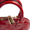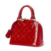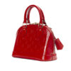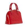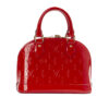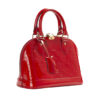 Borsa firmata Louis Vuitton, modello Alma nella misura BB, realizzata in pelle verniciata rossa con hardware dorato. Dotata di una doppia chiusura semicircolare a zip con doppia chiusura con doppio cursore, internamente rivestita in tela tono su tono con piccola tasca, la borsa è capiente per l’essenziale. Munita di doppio manico e di una tracolla rimovibile, per una comoda portata a mano o a spalla. Completa di lucchetto e di chiavi rimovibile. L’articolo si presenta in buone condizioni.