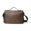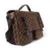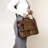 Borsa firmata Louis Vuitton, modello Broadway nella misura GM, realizzata in tela marrone nella classica fantasia Damier Ebene con hardware dorato. Dotata di una patta frontale con doppia chiusura ad incastro, internamente rivestita in tela arancione con comode tasche, la borsa è abbastanza capiente. Munita di una tracolla regolabile in tessuto, per una comoda portata a spalla o a tracolla. L’articolo si presenta in buone condizioni, con segni di usura visibili in foto.