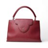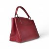 Borsa firmata Louis Vuitton, modello Capucines nella misura GM, realizzata in pelle martellata nella colorazione rossa con hardware argento. Dotata di una chiusura ad incastro, internamente rivestita in tessuto fango con comode tasche, la borsa è abbastanza capiente. Munita di un manico rigido in pelle tono su tono, per una comoda portata a mano o a braccio. L’articolo si presenta in buone condizioni.