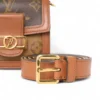 Borsa firmata Louis Vuitton, modello Dauphine nella misura BB, realizzata in tela marrone nella fantasia monogram reverse con inserti in pelle e hardware dorato. Dotata di una patta frontale con classico logo del brand e chiusura a bottone calamitato, internamente rivestita in tessuto scamosciato nero con due tasche, la borsa è capiente per l’essenziale. Munita di una tracolla in catena dorata, per una comoda portata a spalla o a tracolla, viene fornita anche con una cintura in pelle regolabile e rimovibile per un pratico utilizzo in vita. L’articolo si presenta in ottime condizioni.