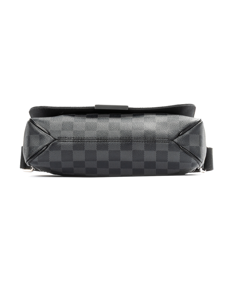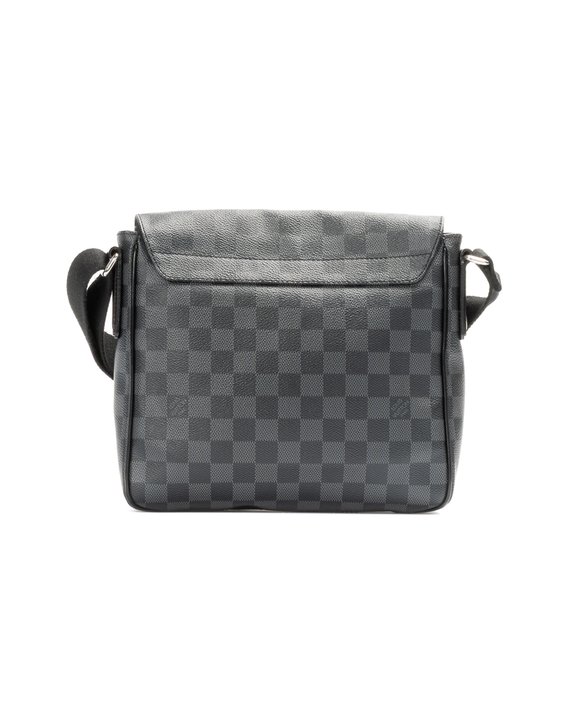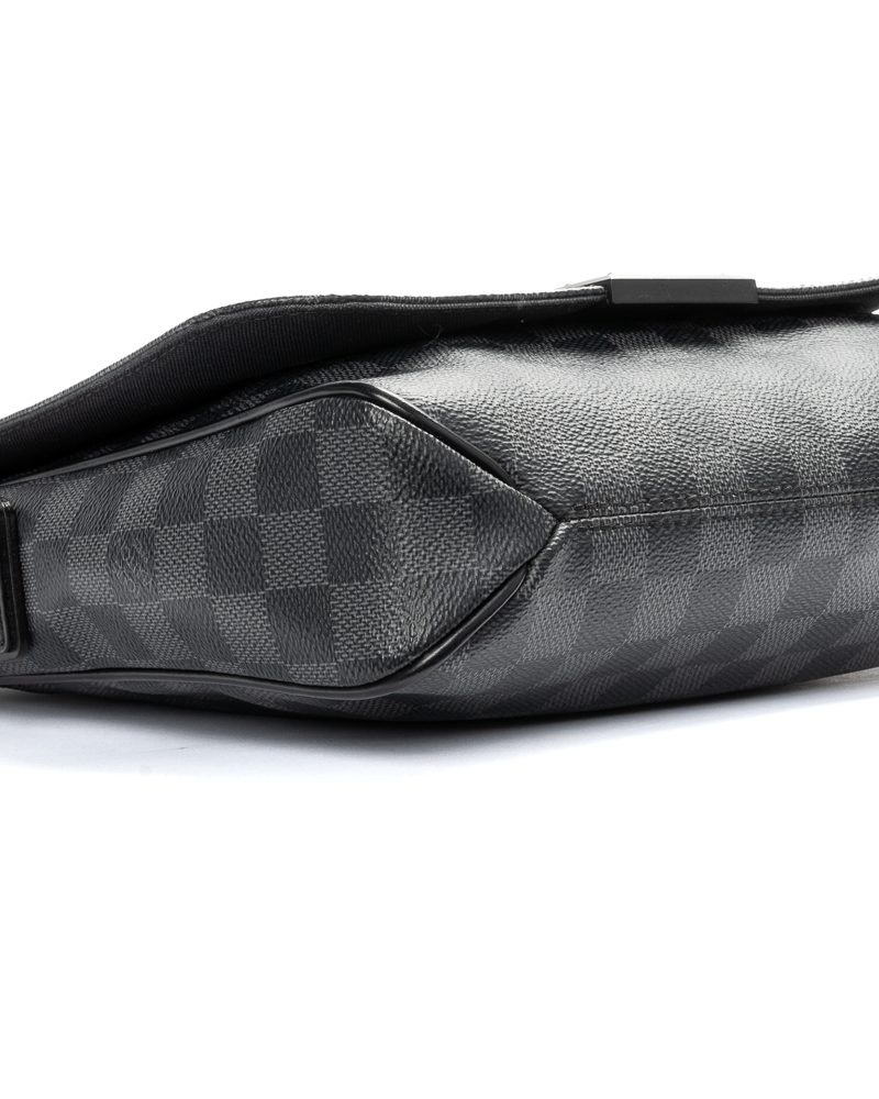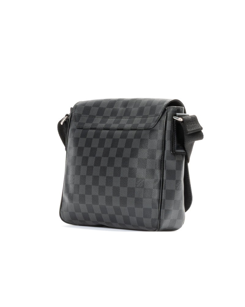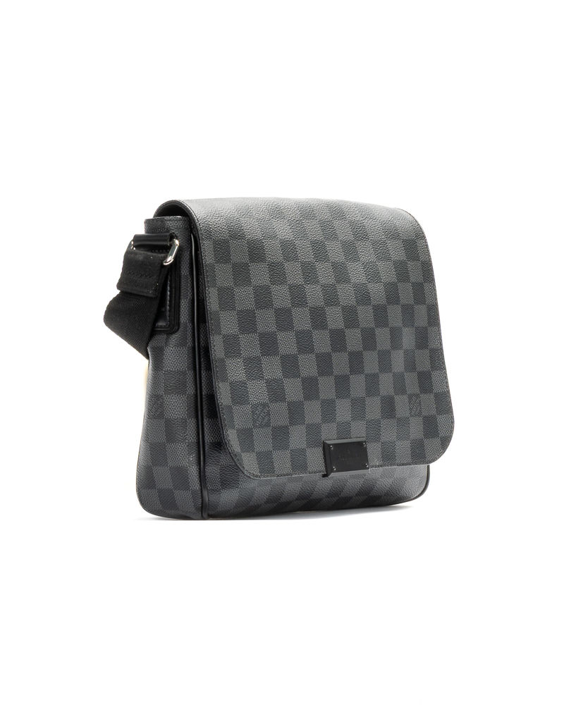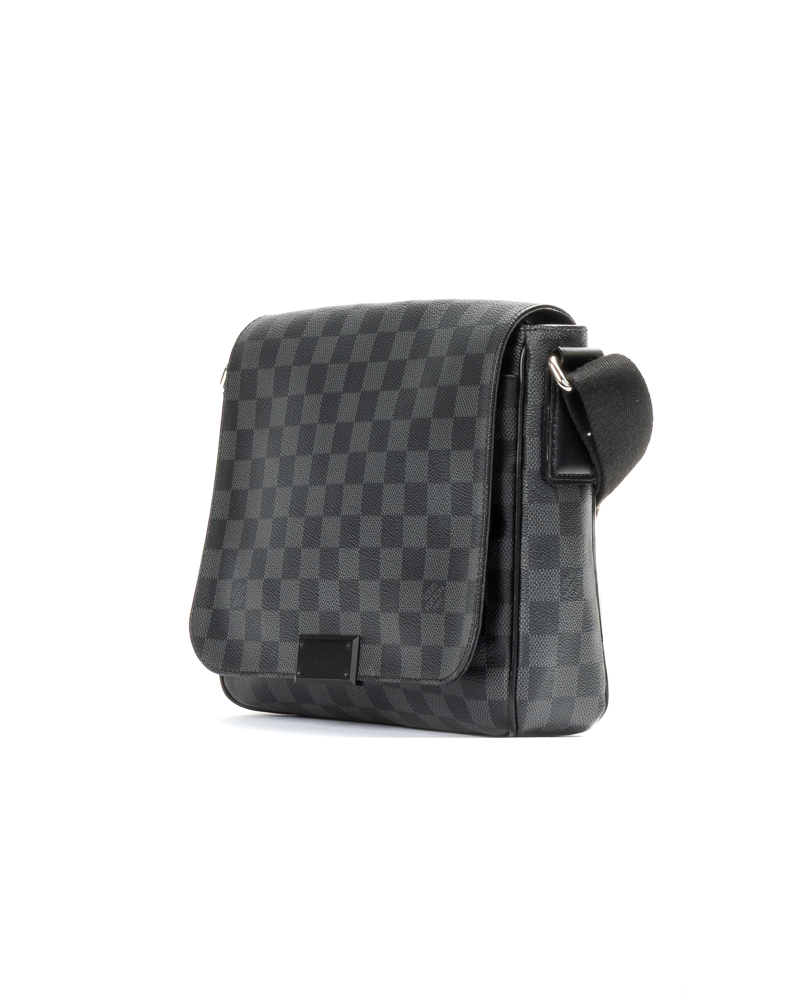 Borsa firmata Louis Vuitton, modello Disctrict nella misura PM, realizzata in tela nella classica fantasia Damier Graphite con rifiniture in pelle e hardware argento. Dotata di una patta con chiusura magnetica, internamente rivestita in tela nera con comode tasche, la borsa è abbastanza capiente. Munita di una tracolla regolabile in tessuto nero, per una comoda portata a spalla o a tracolla. L’articolo si presenta in ottime condizioni.