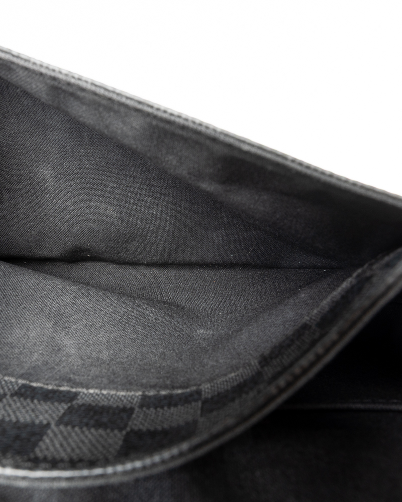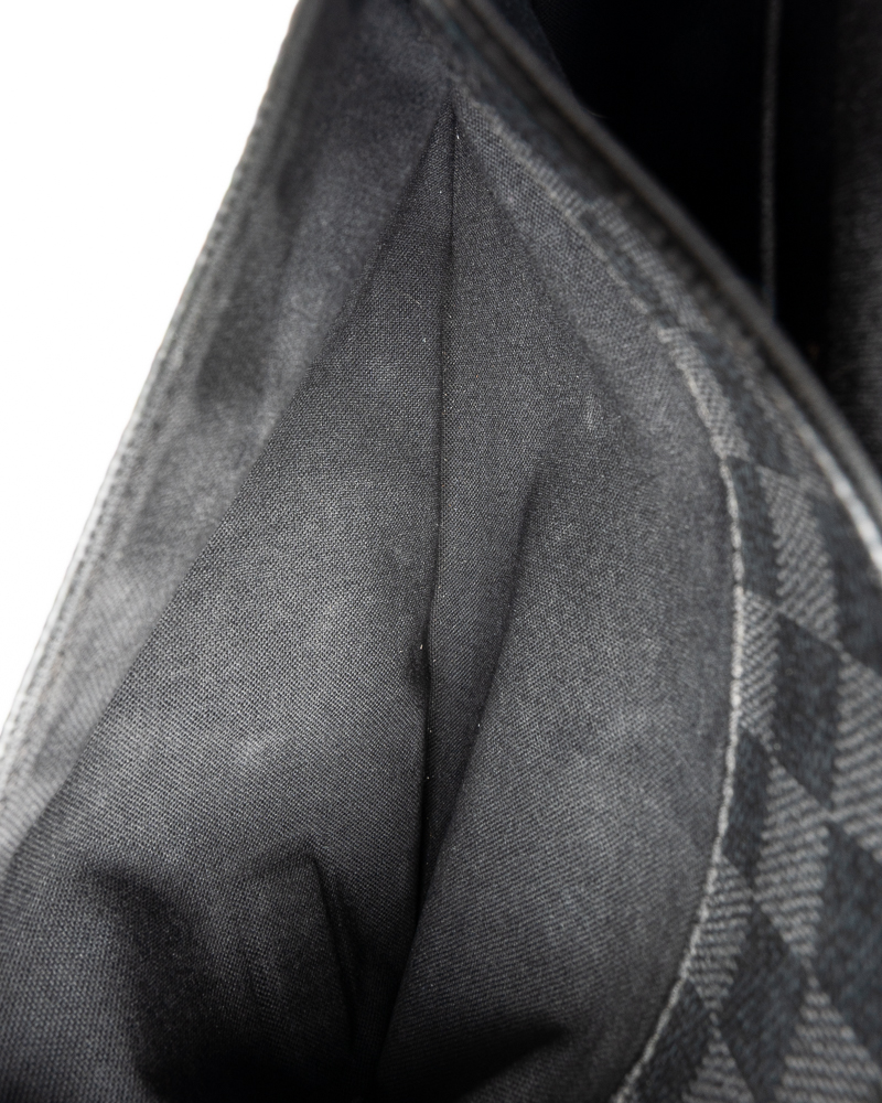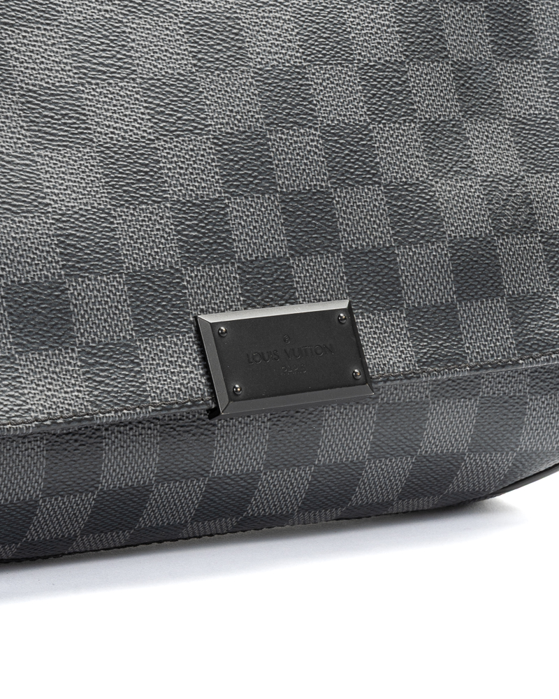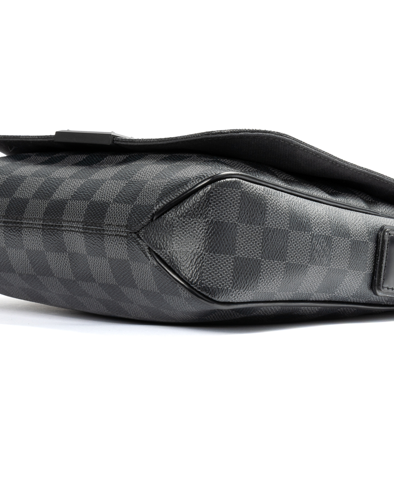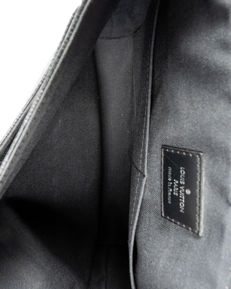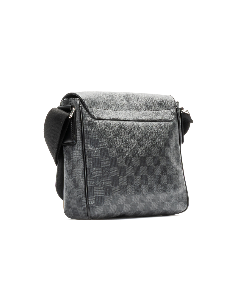 Borsa firmata Louis Vuitton, modello Disctrict nella misura PM, realizzata in tela nella classica fantasia Damier Graphite con rifiniture in pelle e hardware argento. Dotata di una patta con chiusura magnetica, internamente rivestita in tela nera con comode tasche, la borsa è abbastanza capiente. Munita di una tracolla regolabile in tessuto nero, per una comoda portata a spalla o a tracolla. L’articolo si presenta in ottime condizioni.