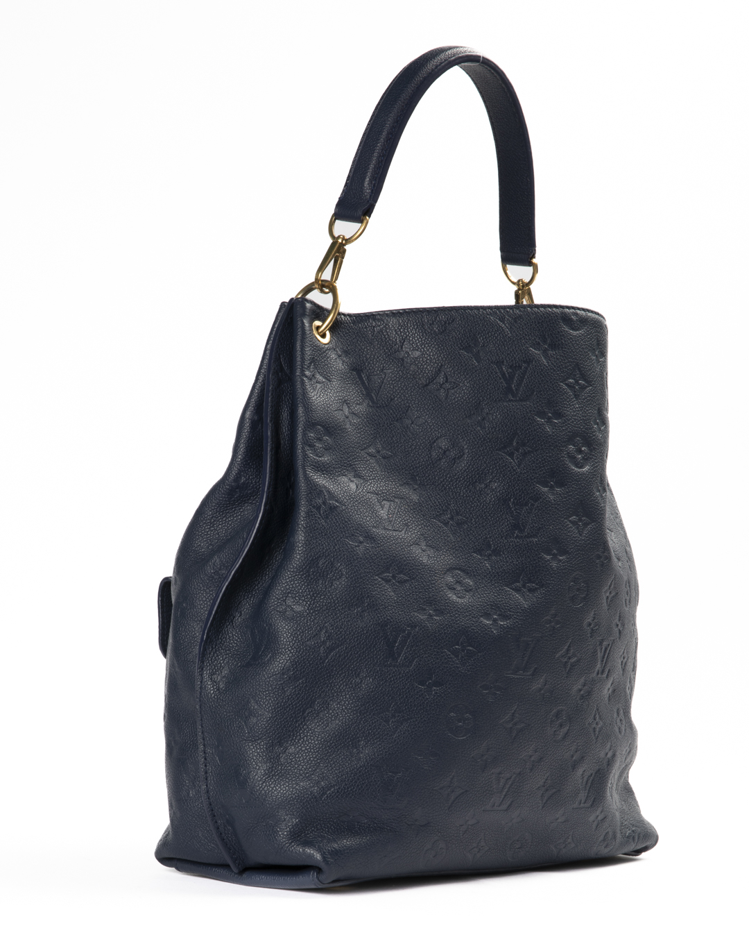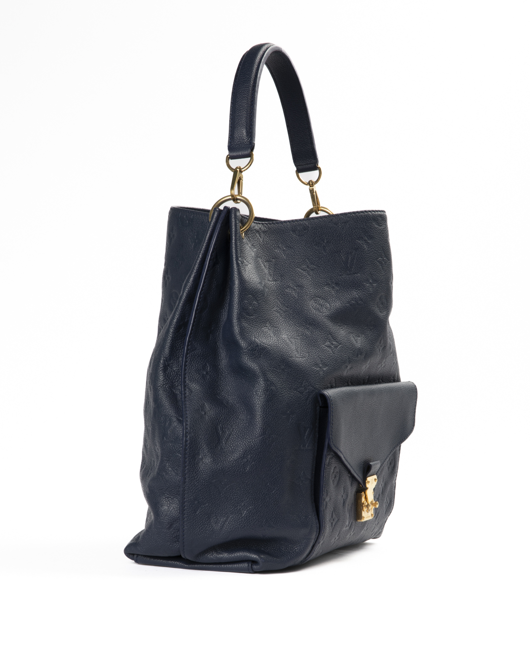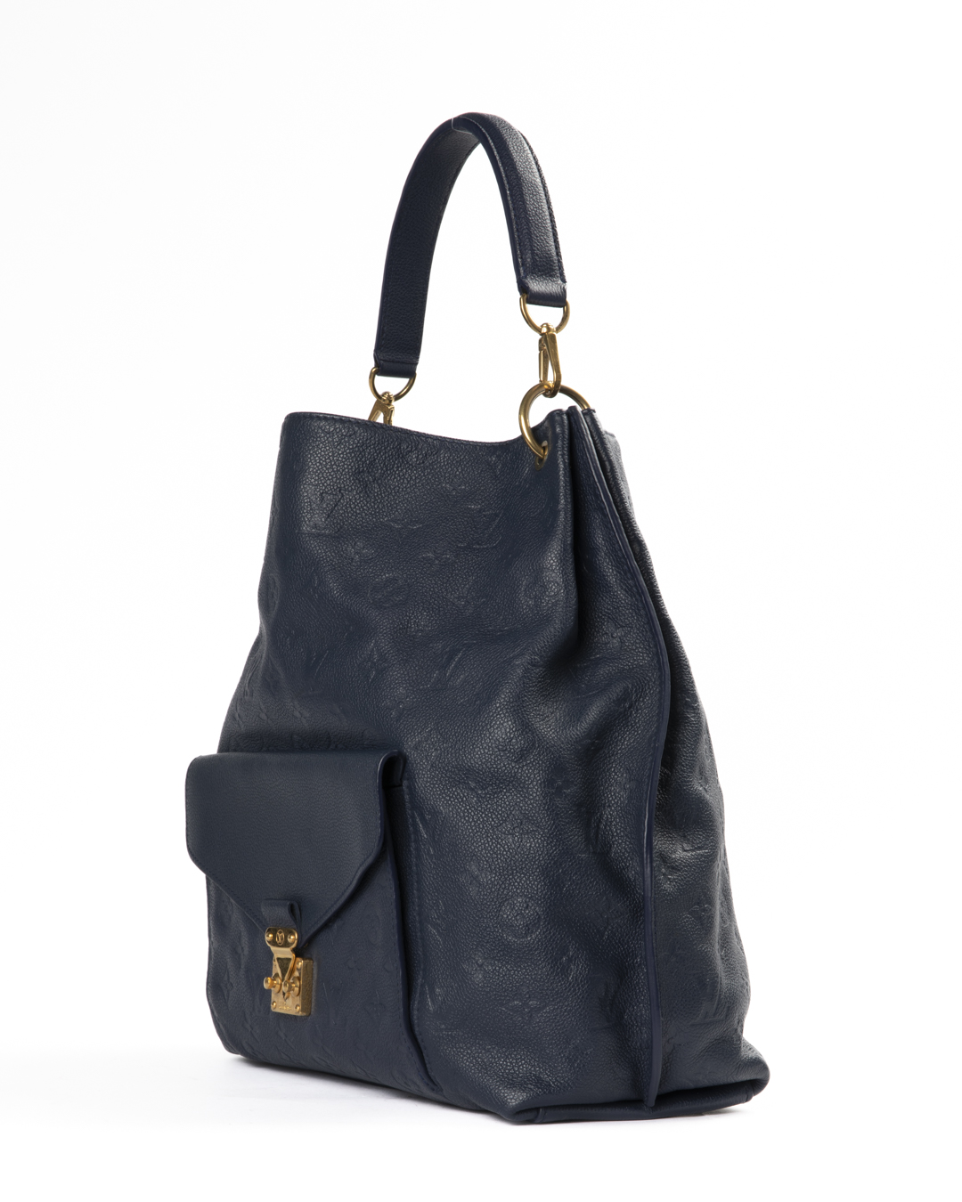 Borsa firmata Louis Vuitton, modello Hobo nella misura MM, realizzata in pelle empreinte blu con hardware dorato. Non è dotata di nessuna chiusura, internamente rivestita in tela tono su tono con comode tasche, la borsa è abbastanza capiente. Munita di un manico e di una tracolla rimovibile, per una comoda portata a spalla o a tracolla. Il design è arricchito da una tasca frontale ispirata al modello Métis, con iconica chiusura ad incastro. L'articolo si presenta in ottime condizioni, con piccole usure sulle parti metalliche.