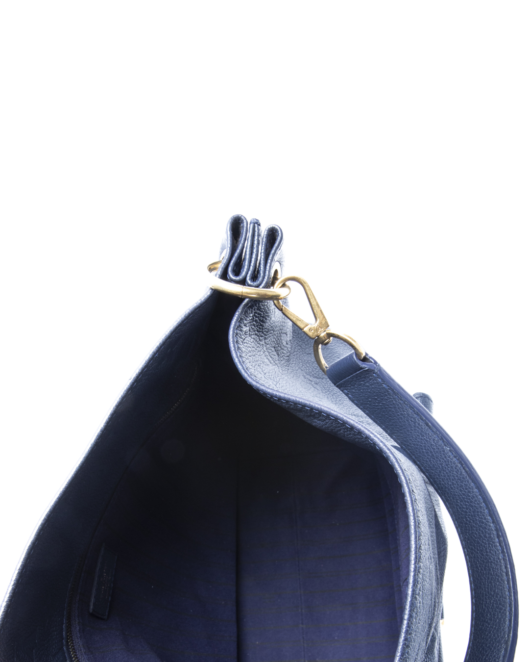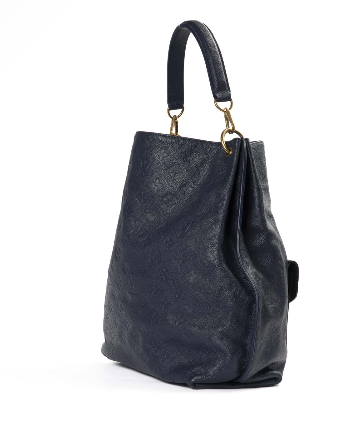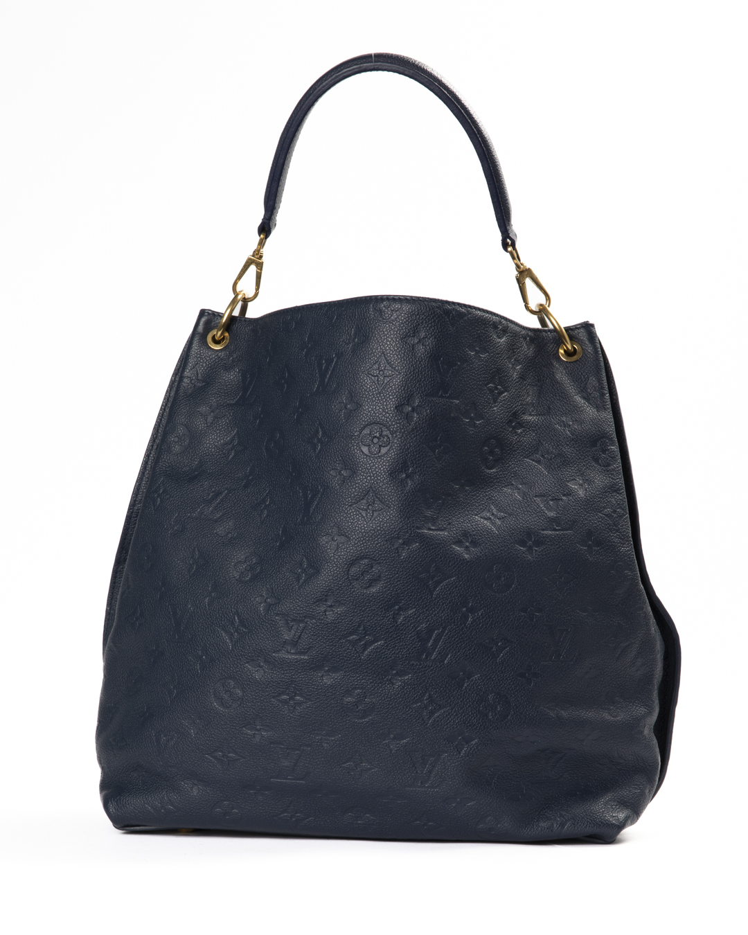 Borsa firmata Louis Vuitton, modello Hobo nella misura MM, realizzata in pelle empreinte blu con hardware dorato. Non è dotata di nessuna chiusura, internamente rivestita in tela tono su tono con comode tasche, la borsa è abbastanza capiente. Munita di un manico e di una tracolla rimovibile, per una comoda portata a spalla o a tracolla. Il design è arricchito da una tasca frontale ispirata al modello Métis, con iconica chiusura ad incastro. L'articolo si presenta in ottime condizioni, con piccole usure sulle parti metalliche.