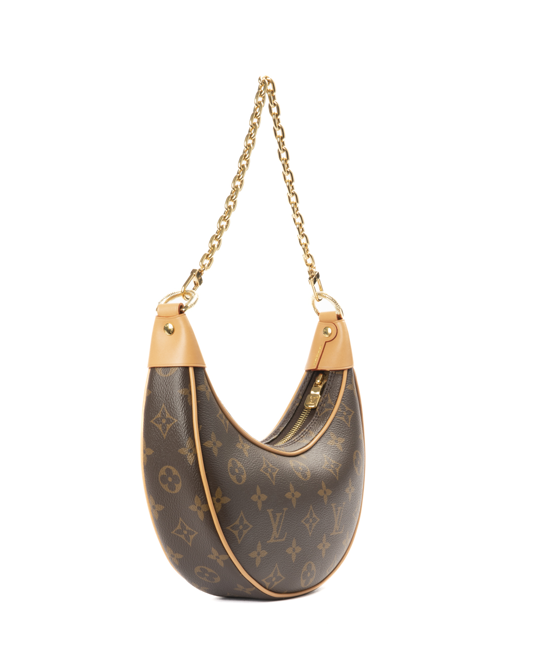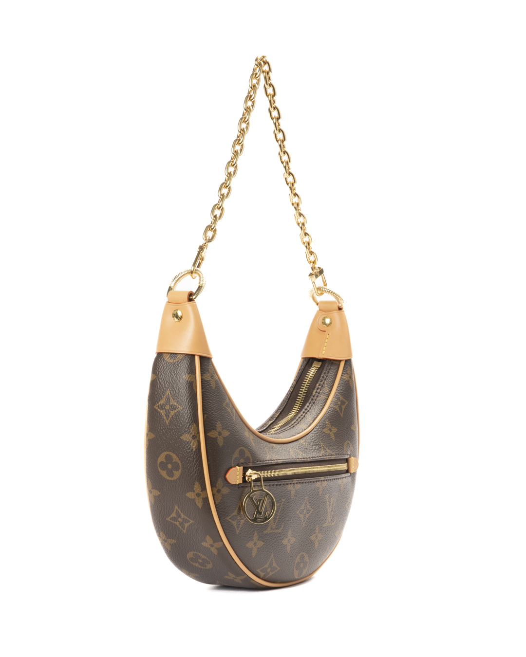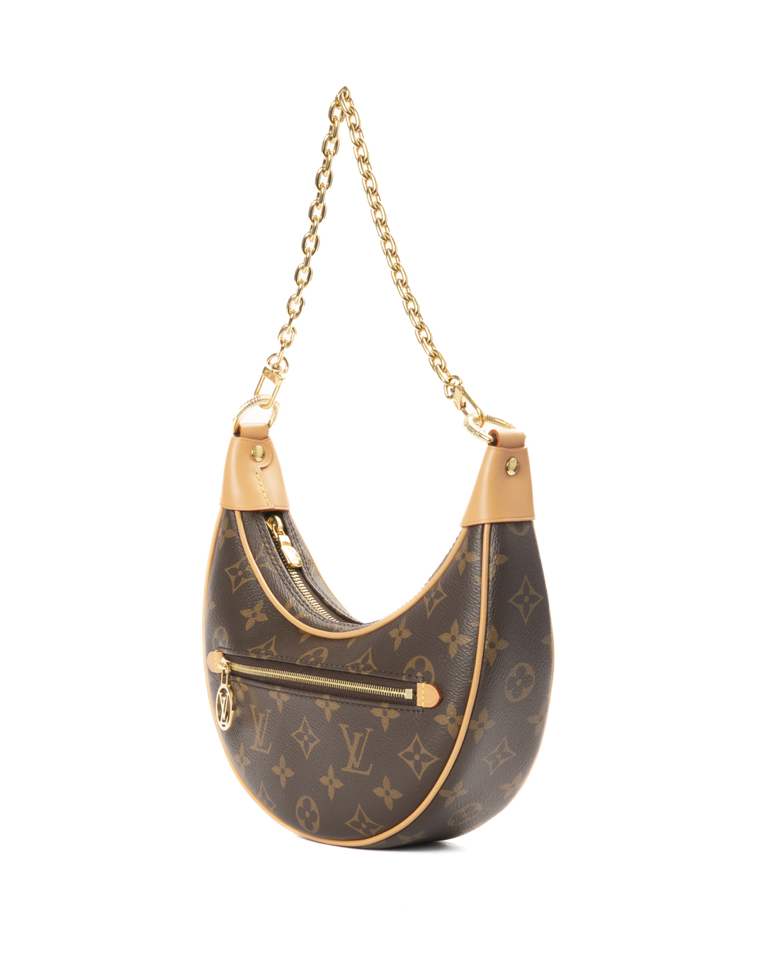 Borsa firmata Louis Vuitton, modello Loop nella misura PM, realizzata in tela marrone nella classica fantasia Monogram con inserti in vacchetta e hardware dorato. Dotata di una chiusura superiore a zip, internamente rivestita in tessuto scamosciato beige, la borsa è capiente per l'essenziale. Munita di doppia tracolla a catena e in vacchetta, per una comoda portata a spalla o a tracolla. Completa di una comoda tasca con chiusura a zip sulla parte frontale. L'articolo si presenta in ottime condizioni.