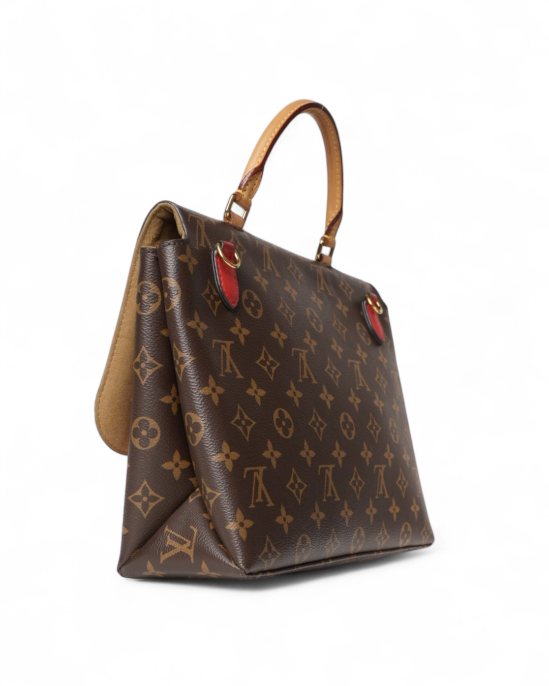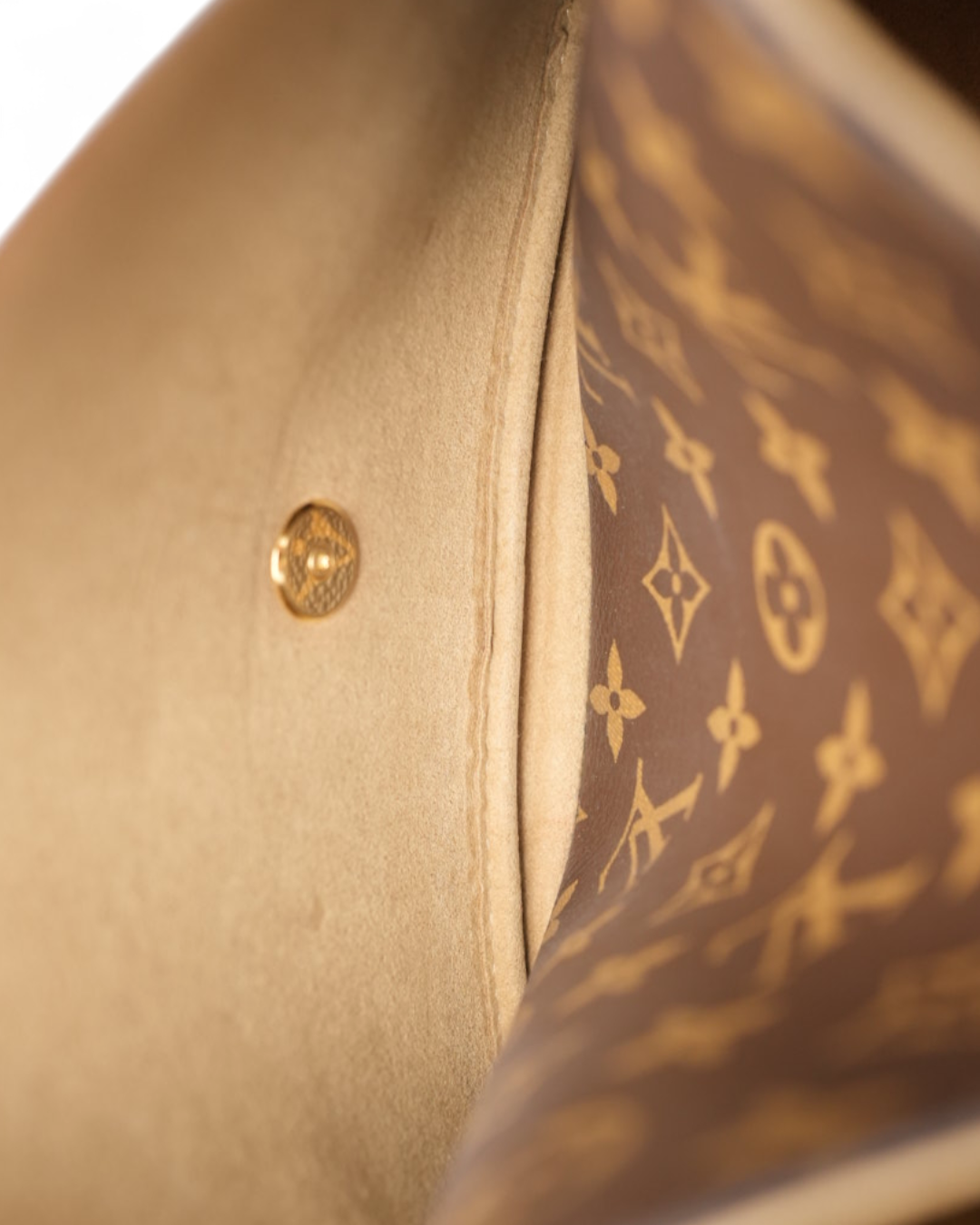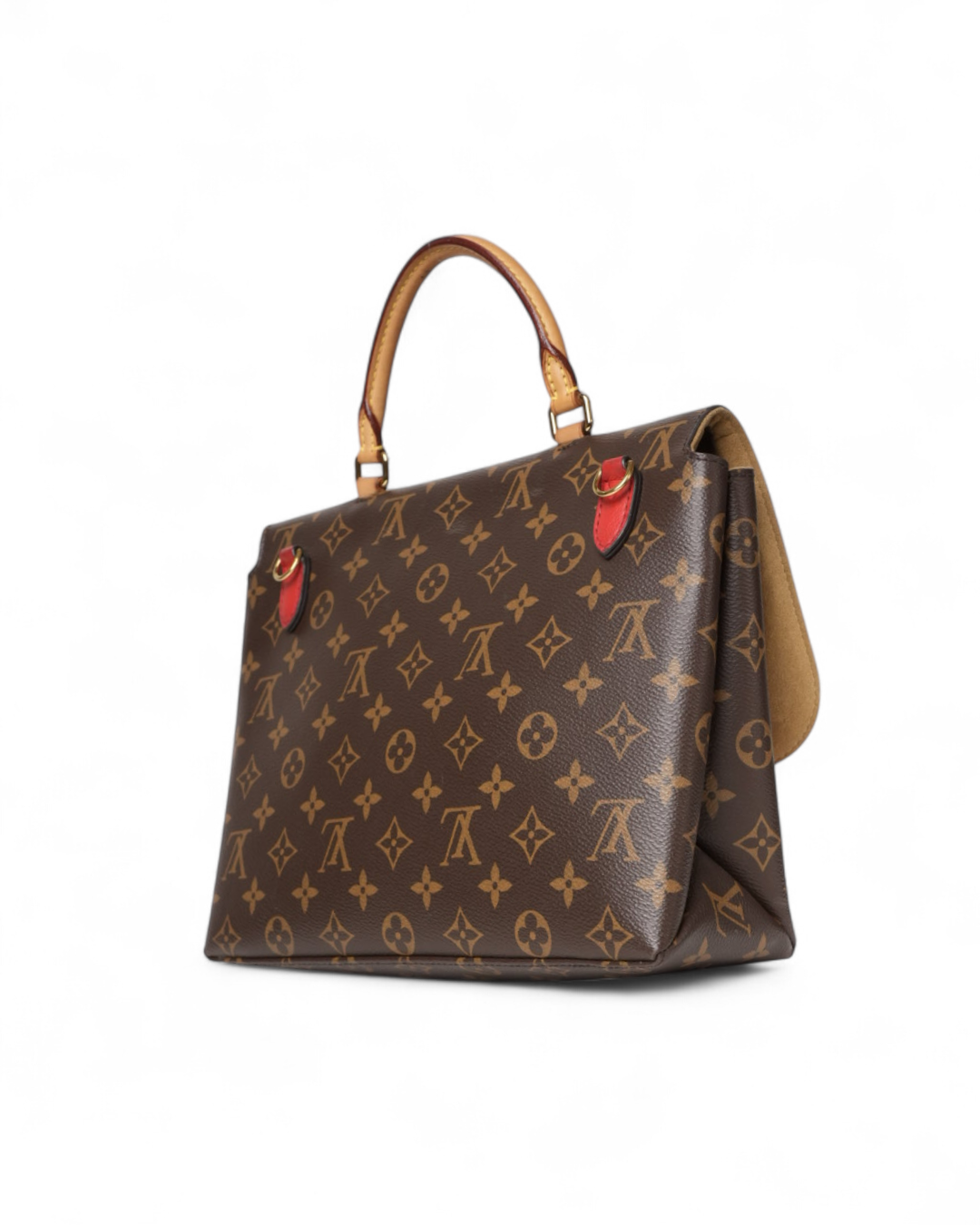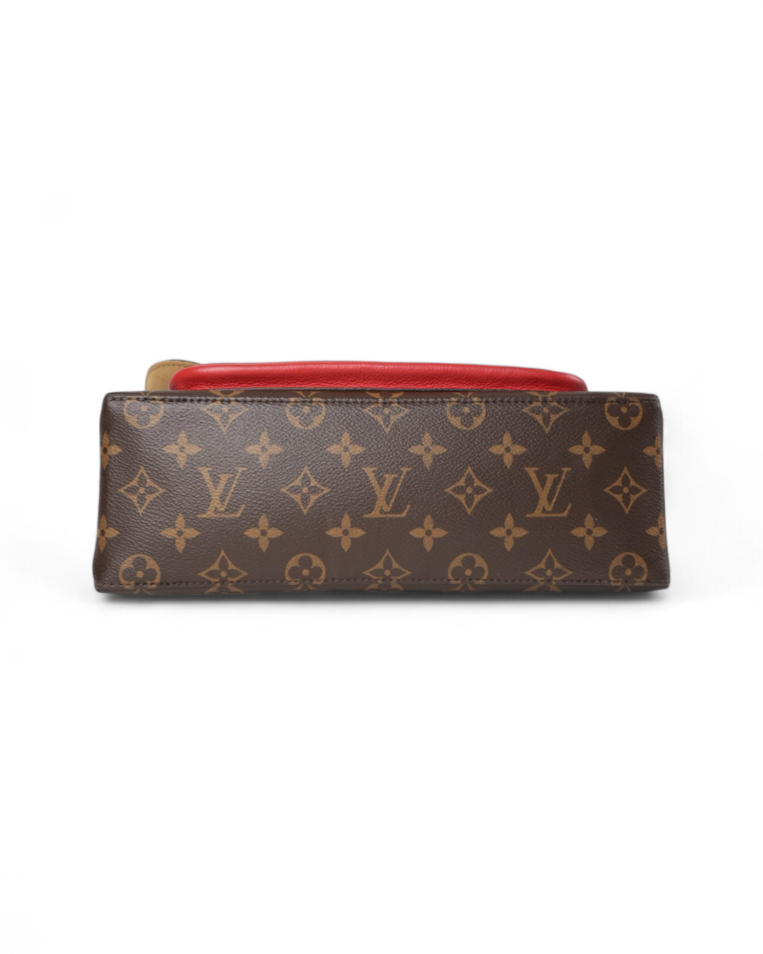 Borsa firmata Louis Vuitton, modello Marignan nella misura MM, realizzata in tela marrone nella classica fantasia monogram con inserti in pelle rossa e hardware dorato. Dotata di una patta con iconico lucchetto “LV” e chiusura calamitata, internamente rivestita in tessuto scamosciato beige con comode tasche, la borsa è abbastanza capiente. Munita di un manico in vacchetta e di una tracolla rimovibile e regolabile, per una comoda portata a mano o a spalla. L’articolo si presenta in buone condizioni.