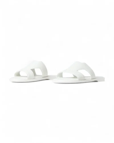 Sandalo firmato Louis Vuitton, modello Mule Oasis, realizzate in pelle di vitello bianco. a calzatura di tendenza è completata dalla morbida suola in gomma leggera, decorata dall’emblematica firma Louis Vuitton Paris. Numero 41\42. L’articolo si presenta in condizioni pari al nuovo.