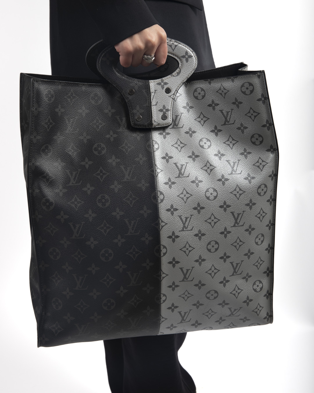 Borsa firmata Louis Vuitton, modello North South nella misura MM, realizzata in tela bicolor nella fantasia Monogram Eclipse con hardware argento. Non è dotata di nessuna chiusura, internamente rivestita in tessuto scamosciato nero con comoda tasca, la borsa è molto capiente. Munita di doppio manico rigido, per una comoda portata a mano. L’articolo si presenta in ottime condizioni.