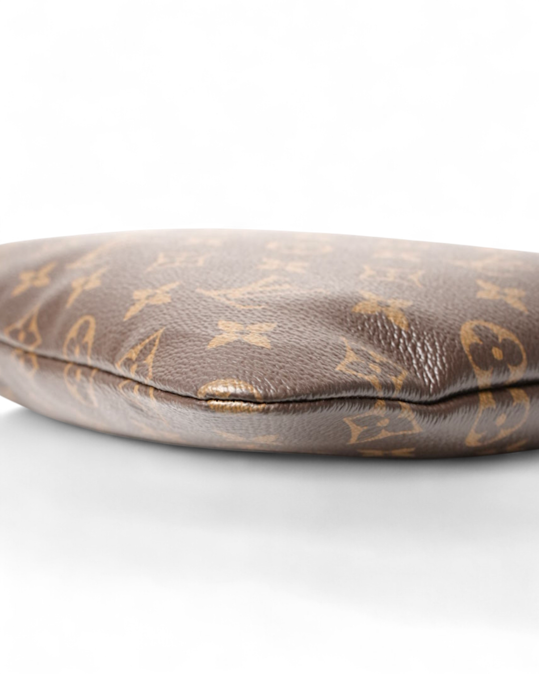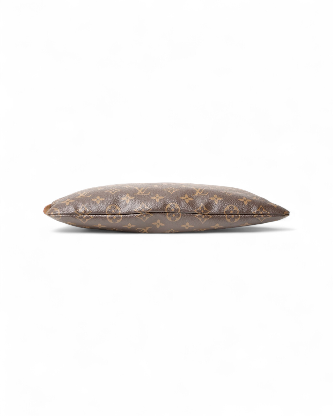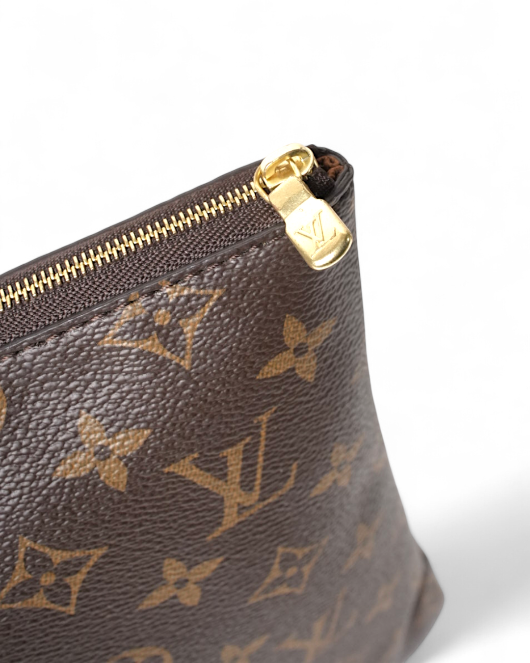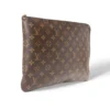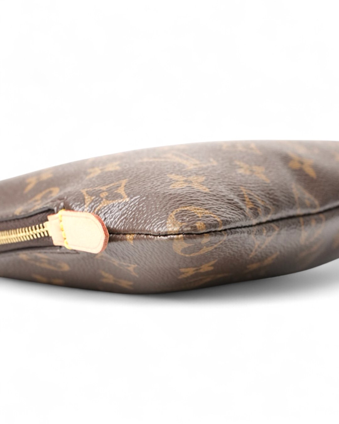 Pochette firmata Louis Vuitton, modello Etui Voyage, realizzata in tela marrone nella classica fantasia monogram con inserti in vacchetta e hardware dorato. Dotata di una chiusura semicircolare a zip, internamente rivestita in tela marrone con comoda tasca, la borsa è abbastanza capiente. L’articolo si presenta in ottime condizioni.
