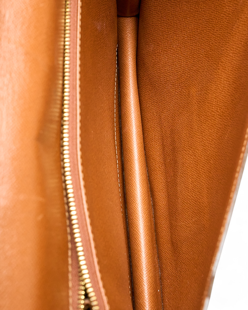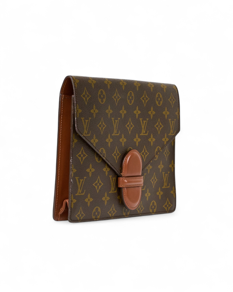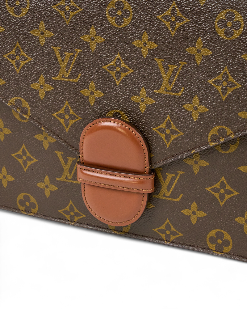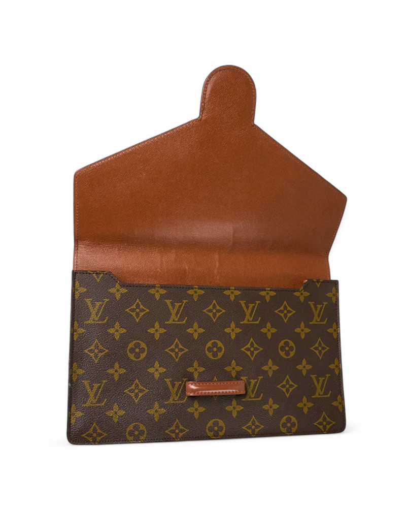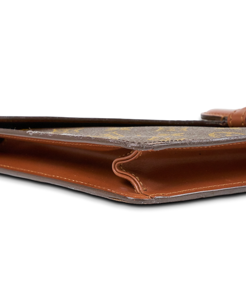 Pochette firmata Louis Vuitton, modello Ranelag nella misura MM, realizzata in tela nella classica fantasia monogram con inserti in pelle marrone e hardware dorato. Dotata di una patta con chiusura ad incastro, internamente rivestita in pelle tono su tono con comoda tasca, la borsa è capiente per l’essenziale. L’articolo si presenta in buone condizioni.