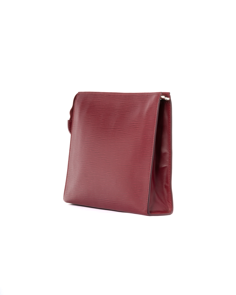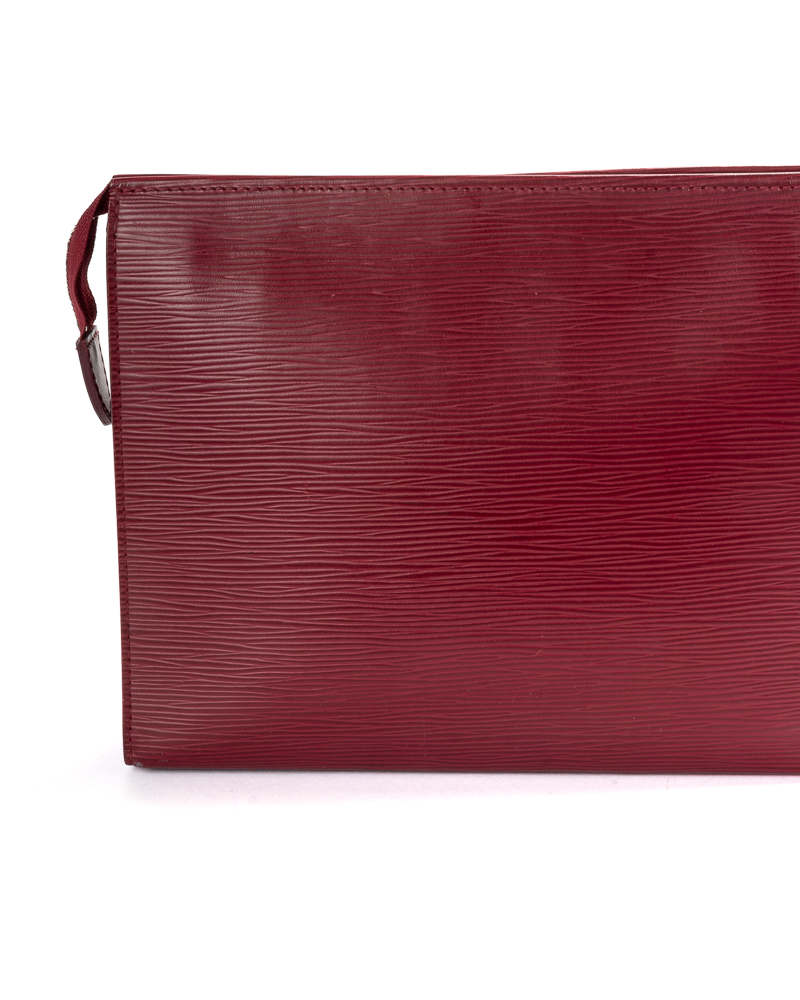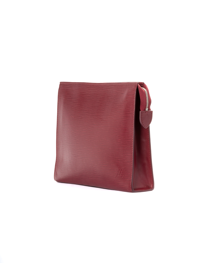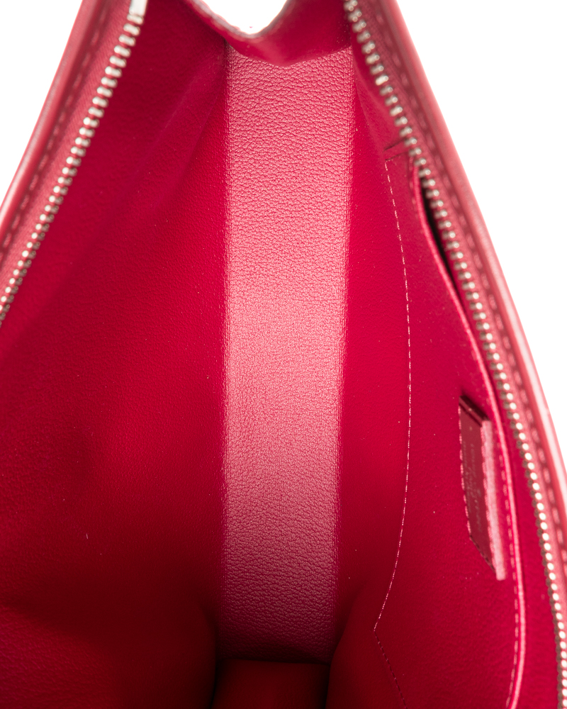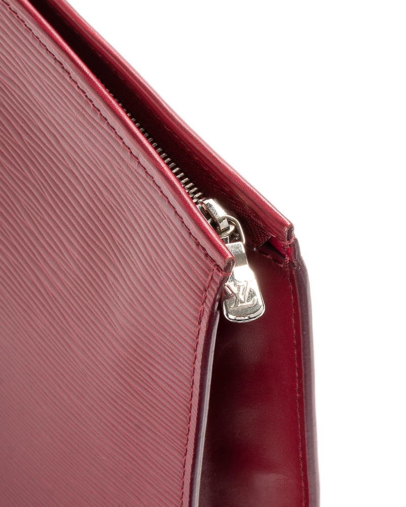 Pochette firmata Louis Vuitton, modello Voyage nella misura MM, realizzata in pelle epi fucsia con hardware fucsia e hardware argento. Dotata di una chiusura superiore a zip, internamente rivestita in pelle tono su tono con comoda tasca, la pochette è abbastanza capiente. L'articolo si presenta in buone condizioni.
