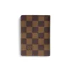 Portacarte firmato Louis Vuitton, realizzato in tela nella classica fantasia damier ebene, non è dotato di nessuna chiusura, internamente rivestito in pelle marrone, completo di due comode fessure in pvc trasparente, per documenti e carte. L’articolo si presenta in buone condizioni.