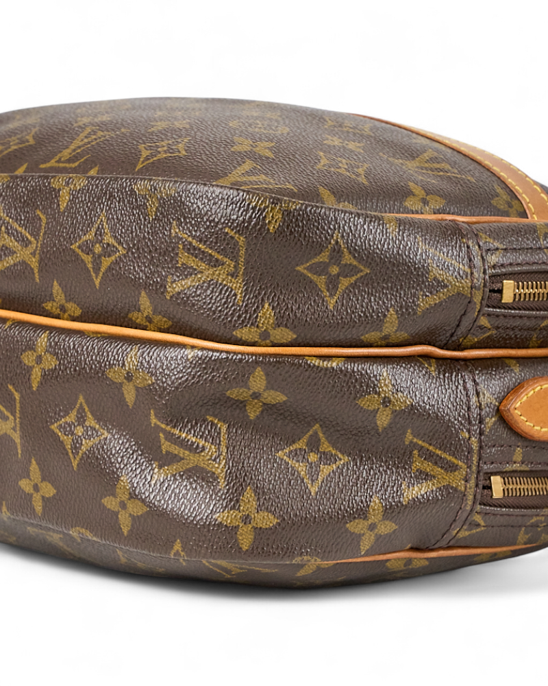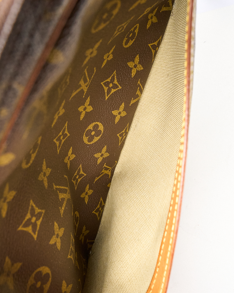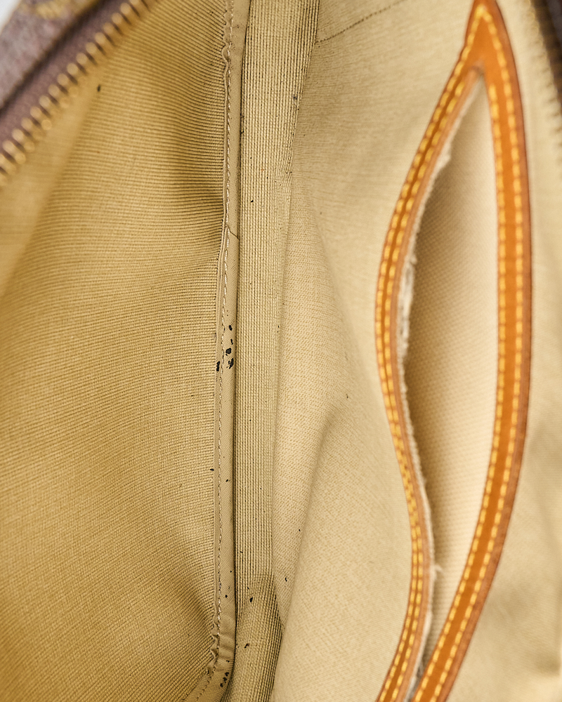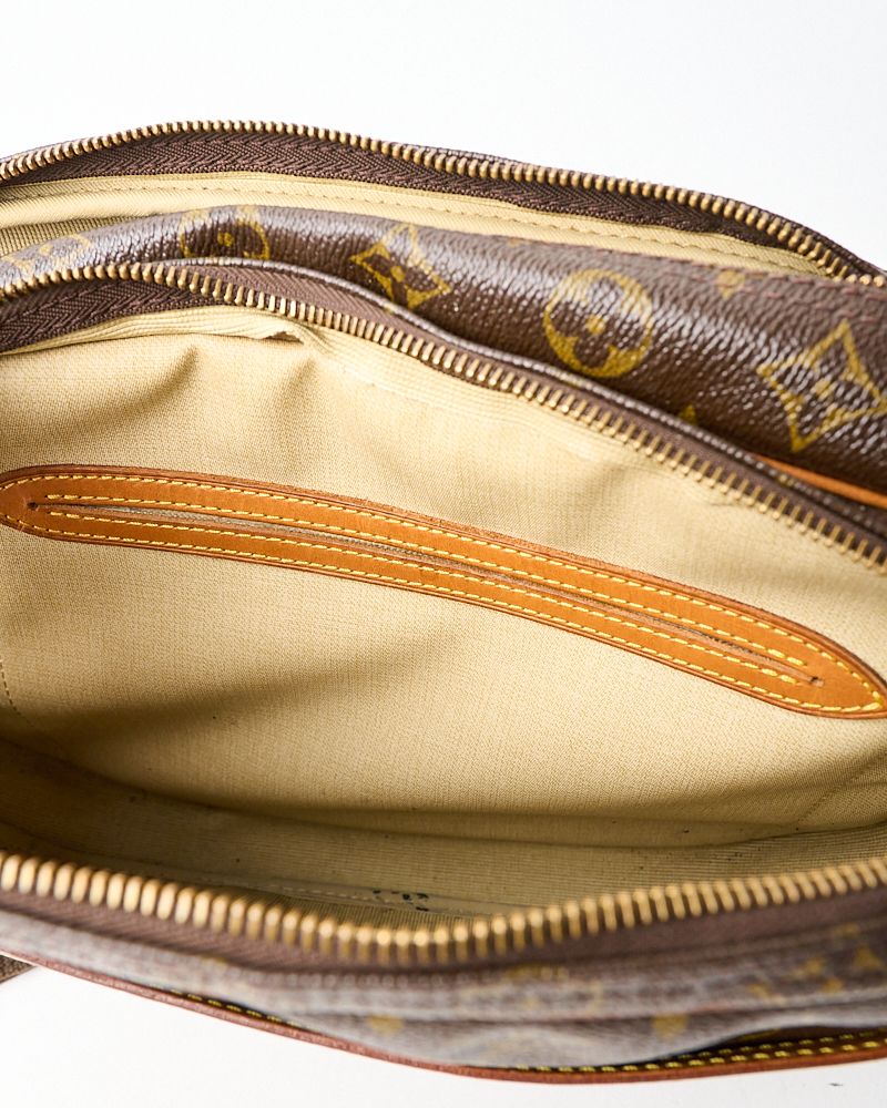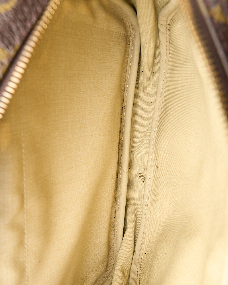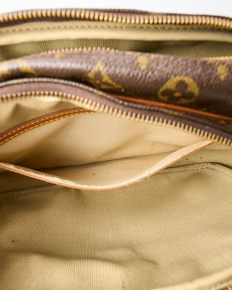 Borsa firmata Louis Vuitton, modello Reporter nella misura PM, realizzata in tela nella classica fantasia monogram con rifiniture in vacchetta e hardware dorato. Dotata di una doppia chiusura superiore a zip, internamente rivestita in tela beige con comoda tasca, la borsa è abbastanza capiente. Munita di una tracolla in tessuto regolabile per una comoda portata a spalla. Sulla parte frontale presenta una pratica tasca senza chiusura. L’articolo si presenta in buone condizioni.